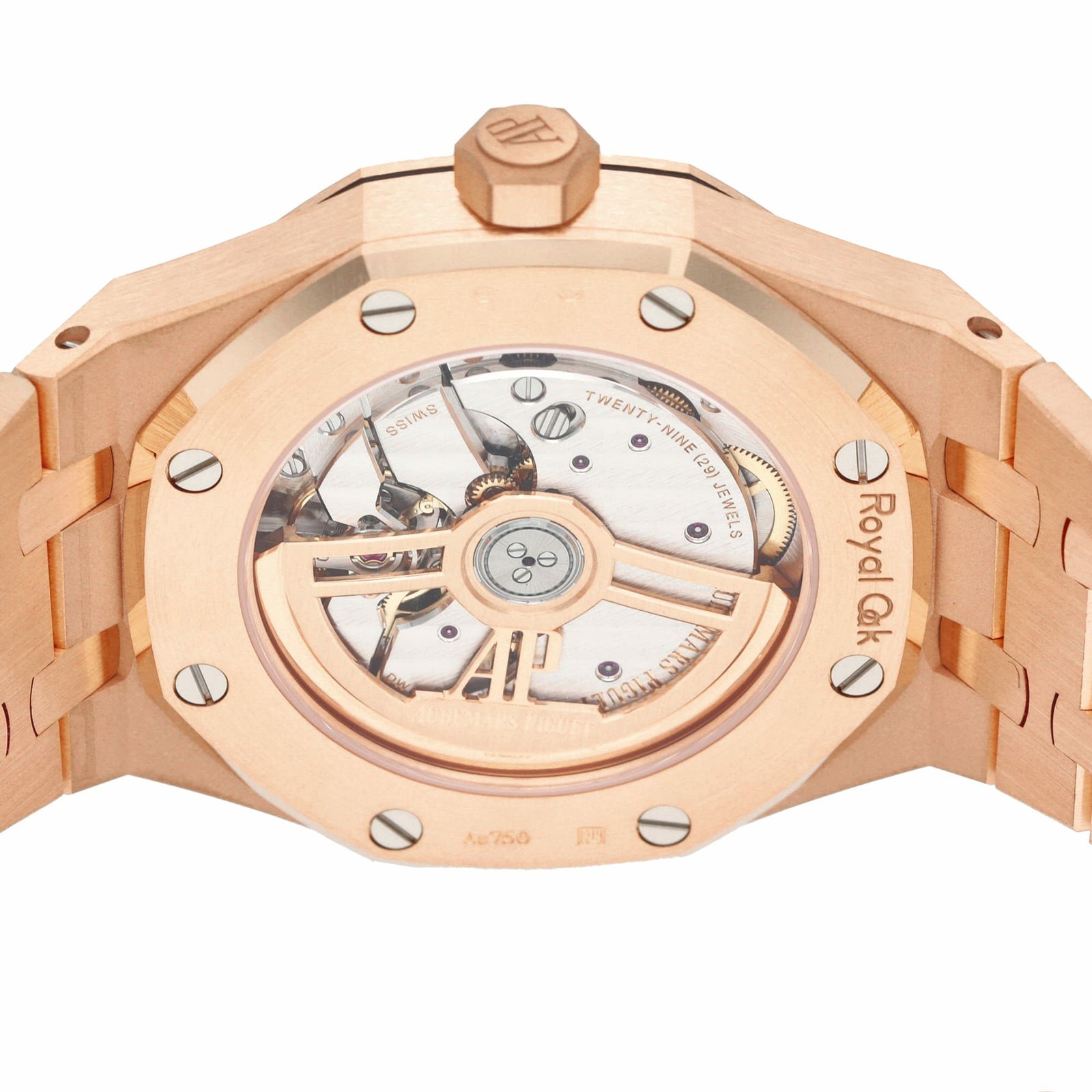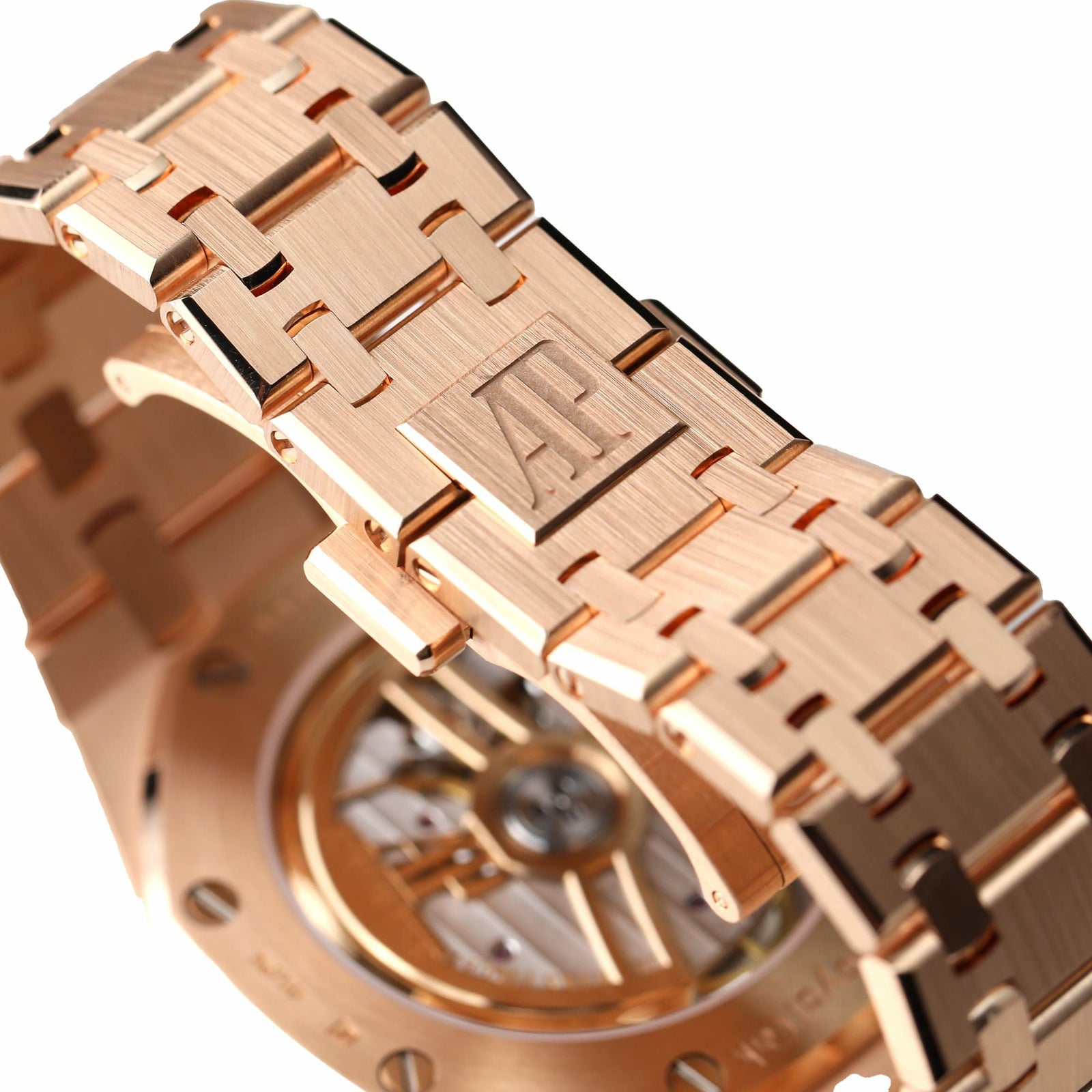 ムーブメントは自動巻きCal.5900で、3針+デイトの使いやすい構成。ピンクゴールドの仕上げ(ヘアラインと面取りのコントラスト)が本当に綺麗なので、写真より実物のほうが“質感で惚れる”タイプです。