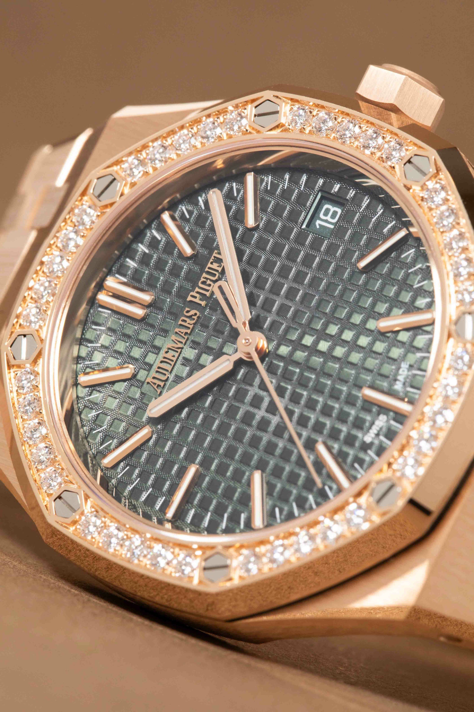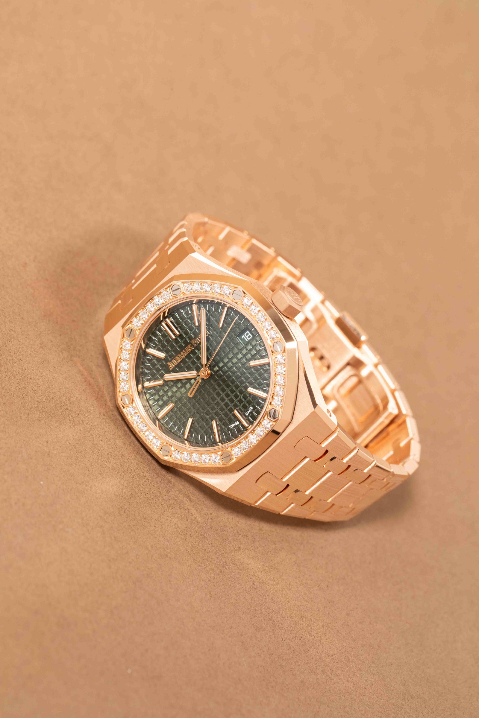【新品】 オーデマ ピゲ 時計 ロイヤル オーク オートマティック ベゼルダイヤ 15551OR.ZZ.1356OR.06 カーキグリーン文字盤 自動巻き AUDEMARS PIGUET