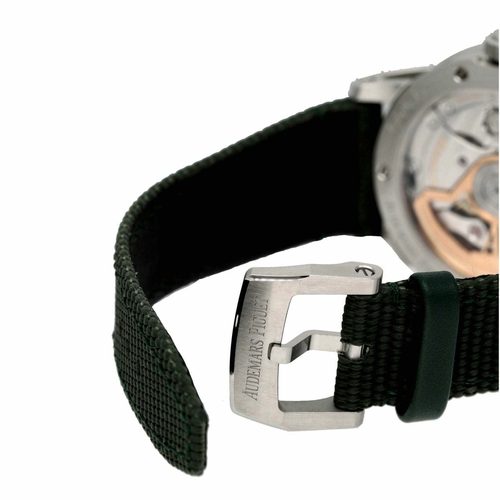 「オーデマピゲの美学を纏う  ~洗練と機能性を兼ね備えたシンプルなCODE11.59~」 CODEの時計は、3層構造のケースとダブルカーブのサファイアガラスを採用し、シンプルながらも洗練されたディテールにこだわった設計が魅力です。ラグ一体型ケースにギョーシェ模様が美しいモノクログリーンの文字盤を配し、モダンな印象を醸し出しつつ、スポーティーさも兼ね備えています。 ムーブメントには、信頼性の高いロイヤルオークにも使用されるCal.4302を搭載。約70時間のロングパワーリザーブを実現し、地板にはコート・ド・ジュネーブ仕上げが施され、22金ピンクゴールドのローターが優美に輝きます。 スケルトン仕様から覗くムーブメントの美しい動きも堪能できる、CODEならではの逸品です。