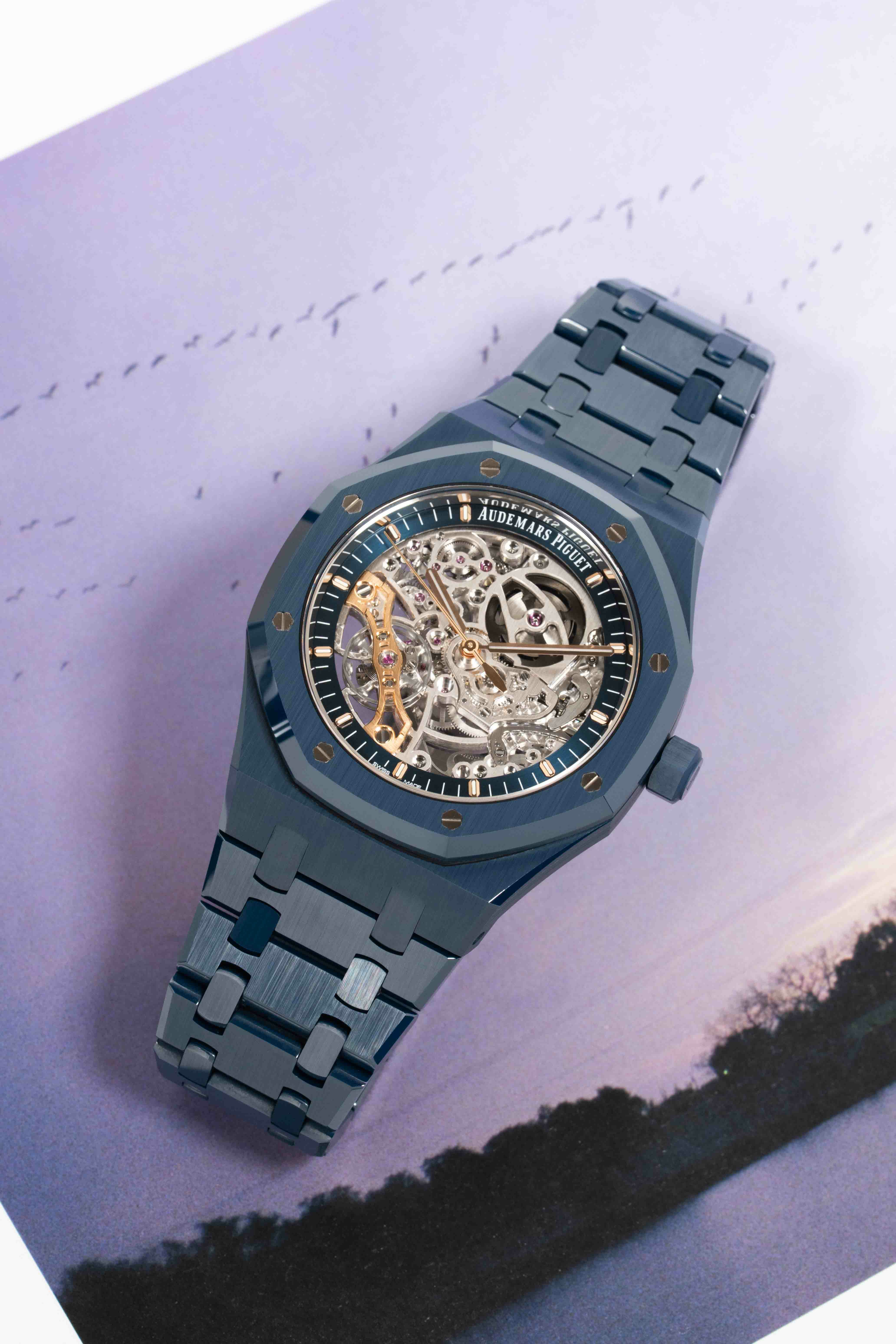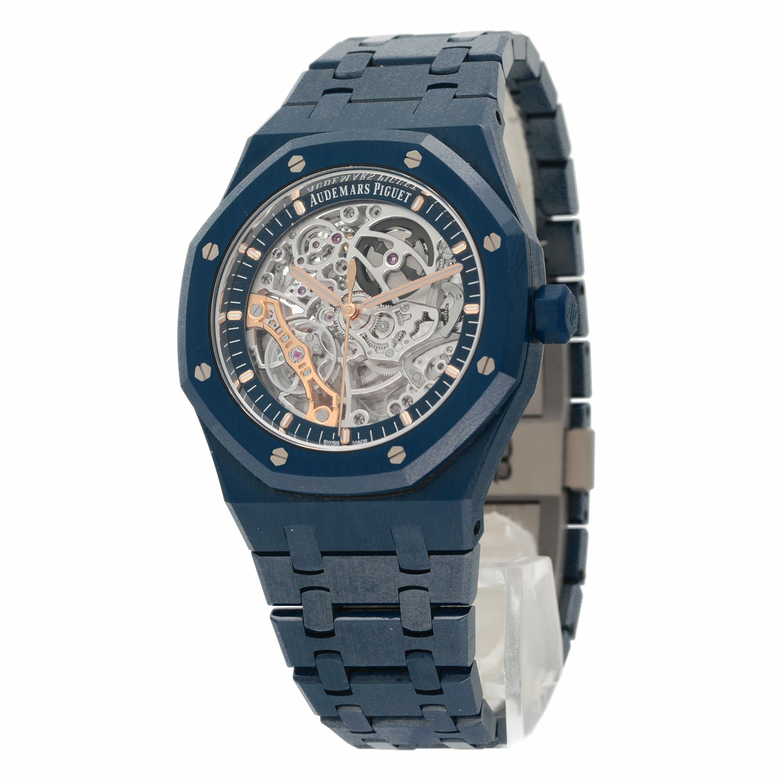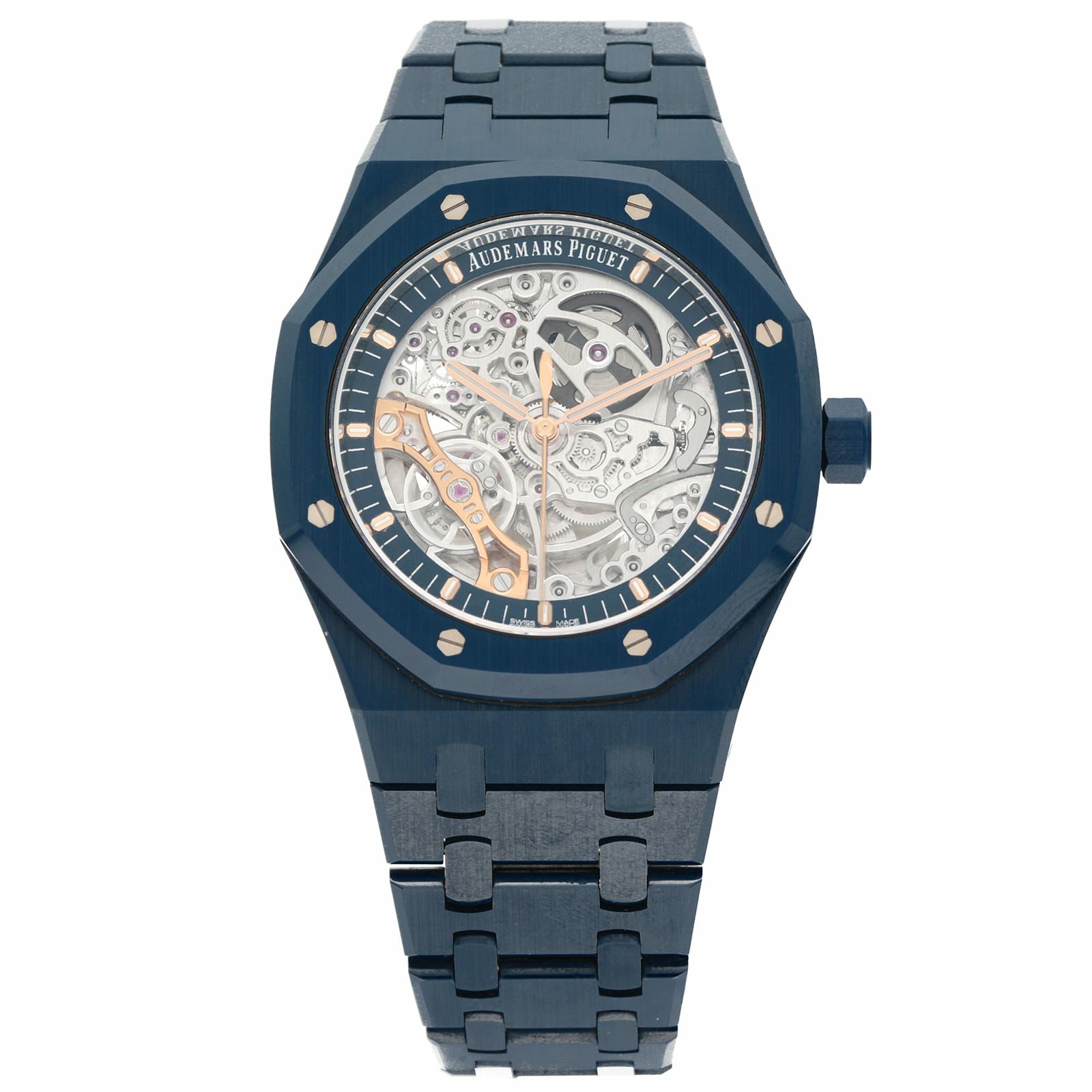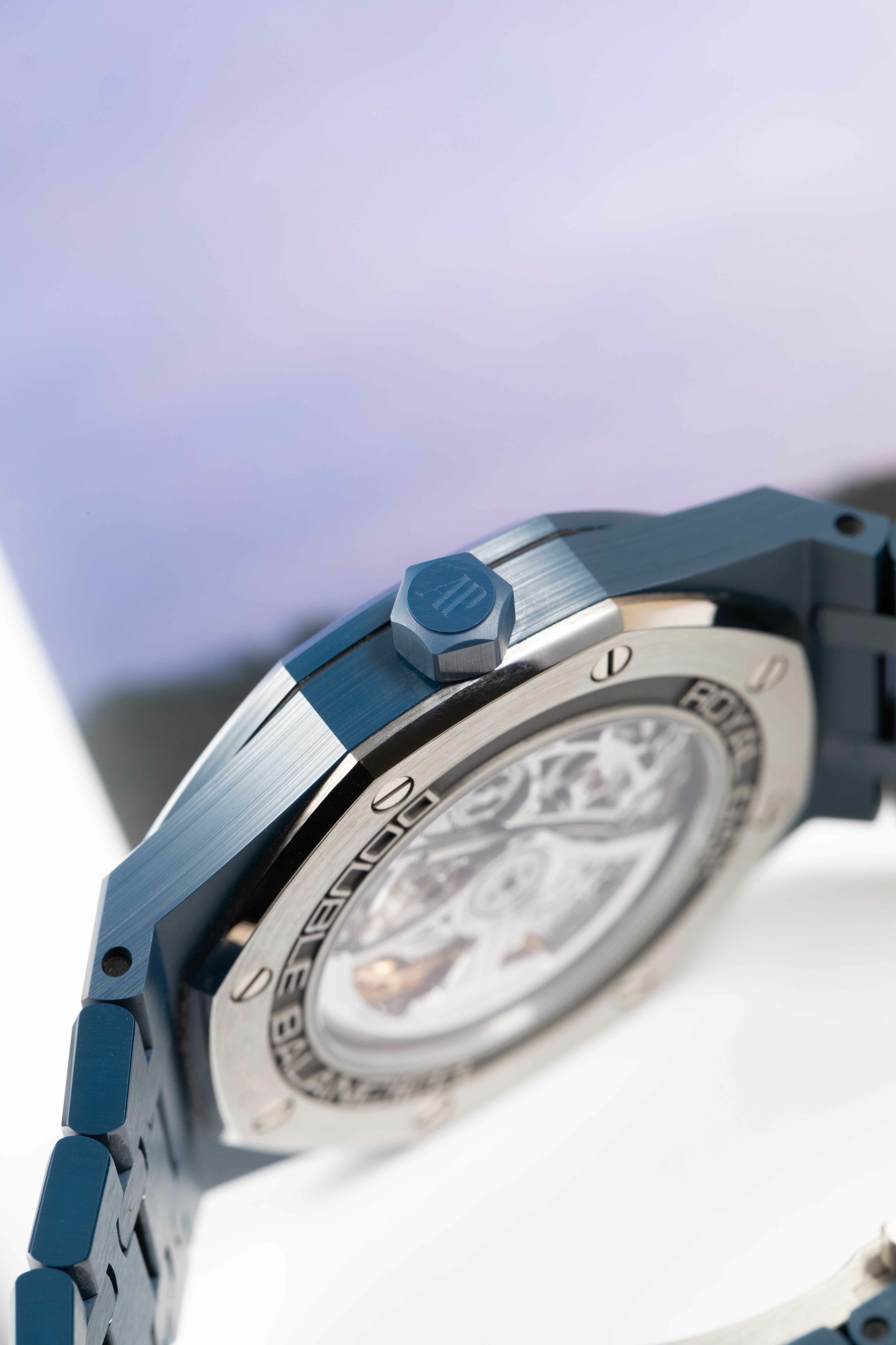 ロイヤルオークのアイコンデザインに、機械そのものを“見せる美しさ”を加えたハイエンドモデルです。最大の特徴は、ブランド独自のダブル バランスホイール機構で、安定性と精度面に配慮しながら、文字盤側からそのメカニズムをしっかり楽しめるところ。オープンワーク仕様ならではの立体感が強く、腕に乗せた瞬間に“ただのロイヤルオークではない”特別感が伝わります。