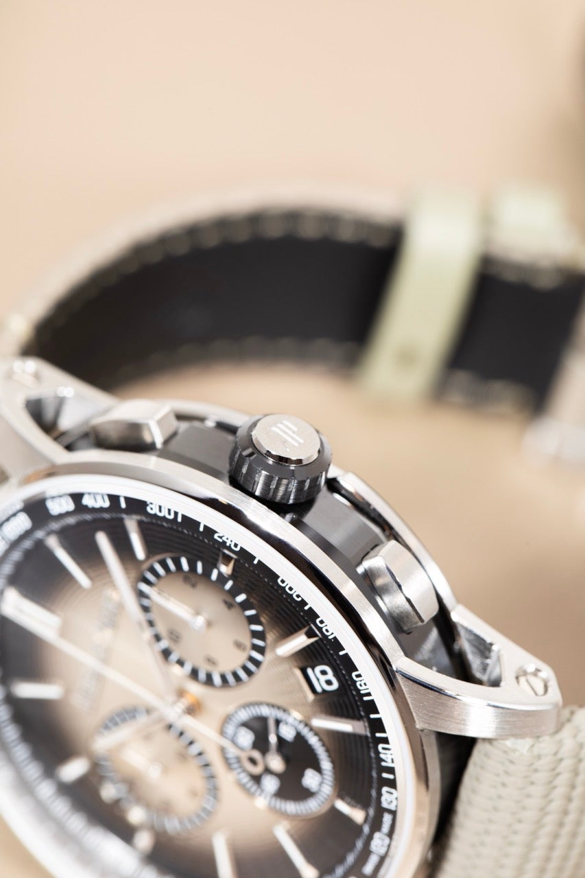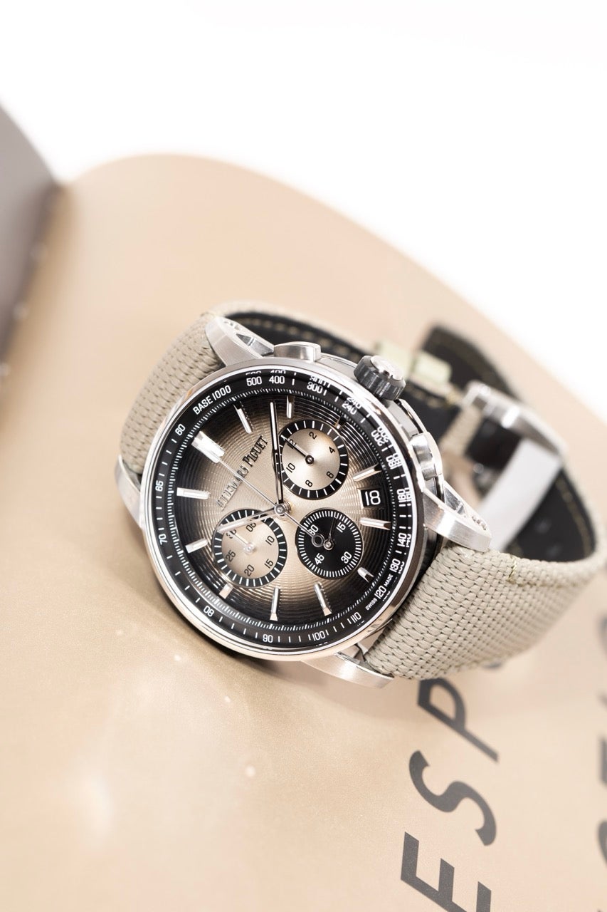 仕様:クロノグラフフライバック、時、分、スモールセコンド、デイト