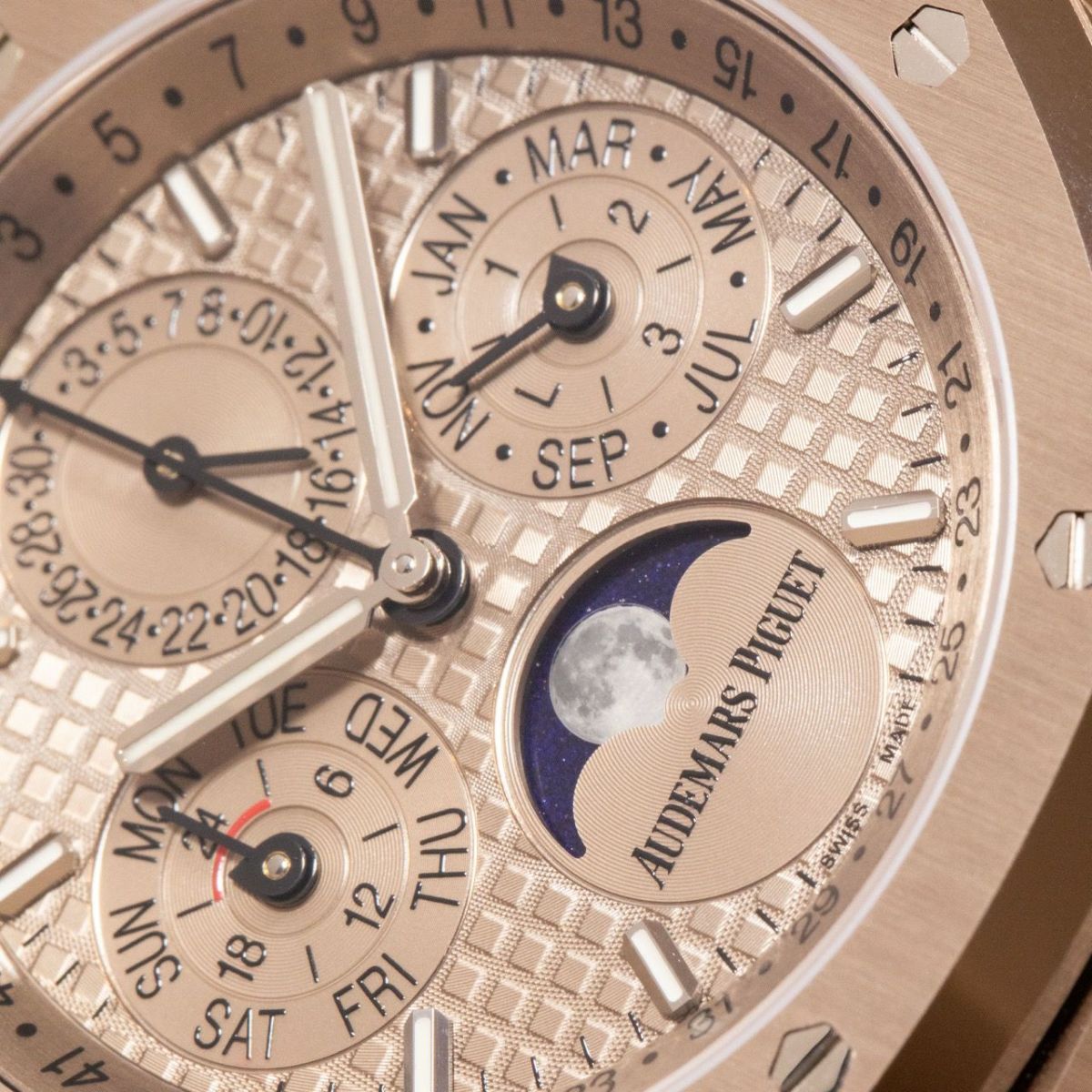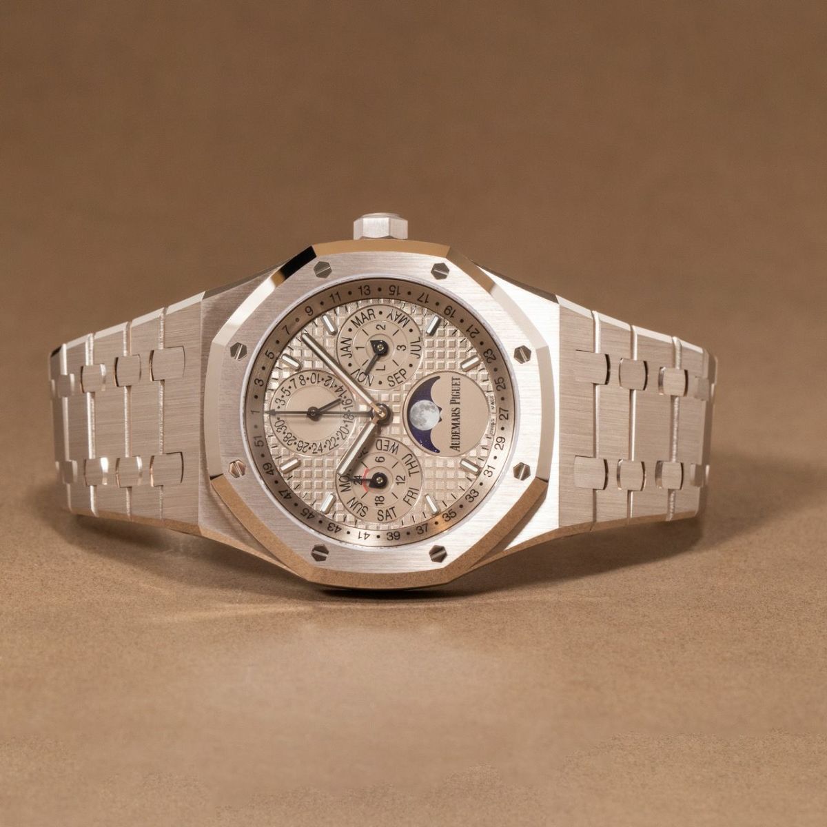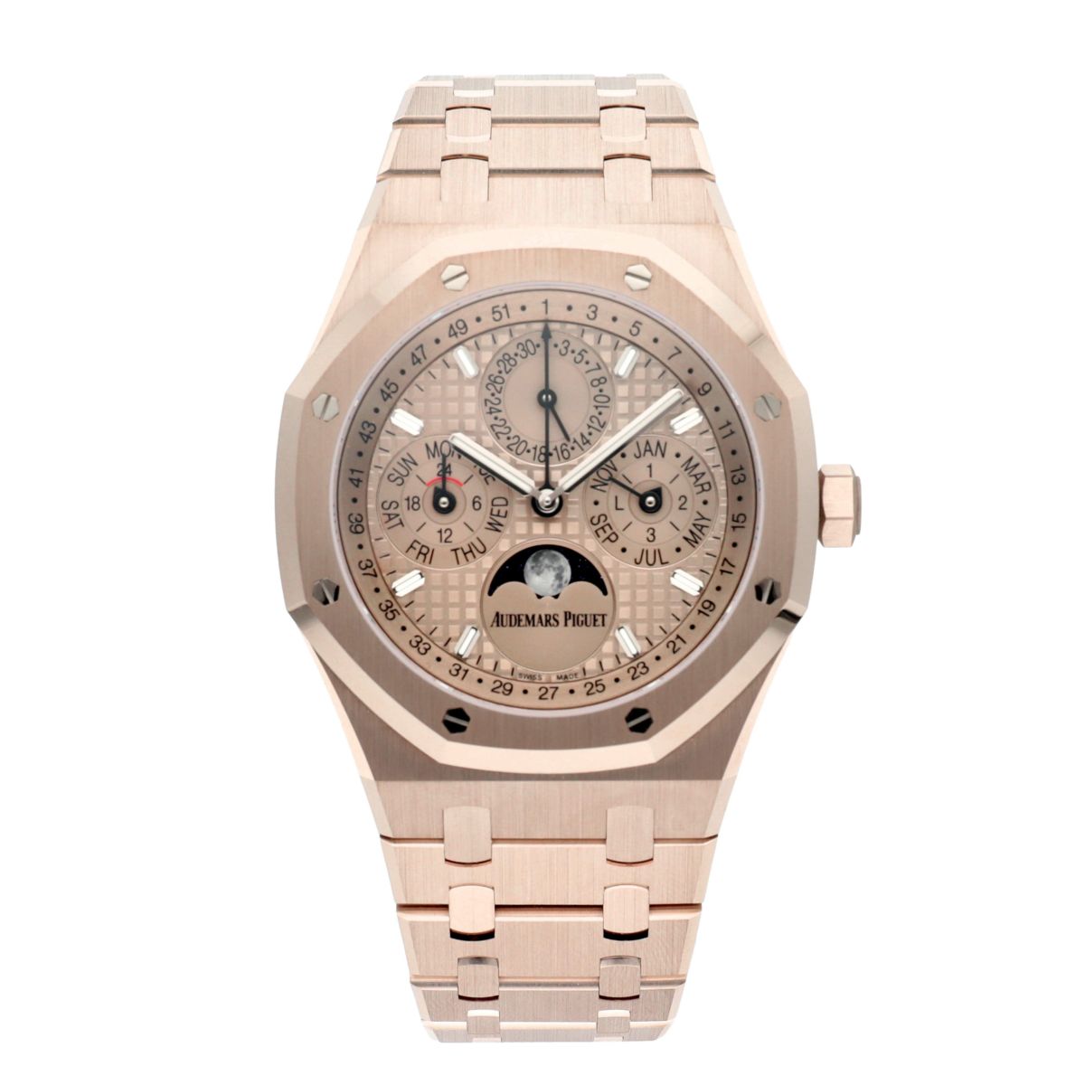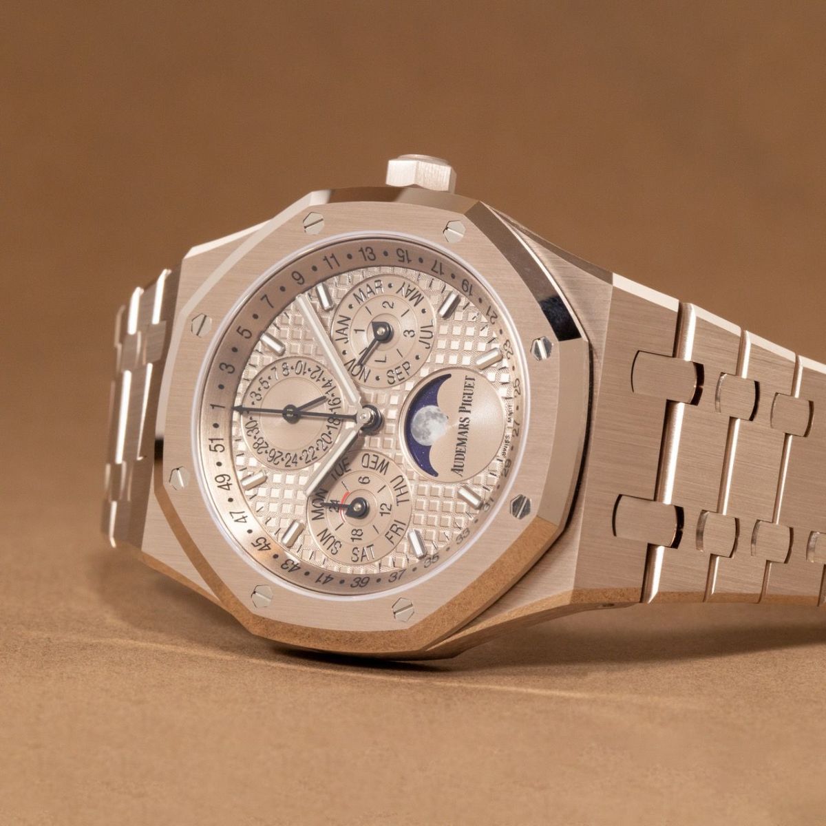 他の画像を見る 【新品】オーデマ ピゲ 時計 ロイヤルオーク パーペチュアルカレンダー 26674SG.OO.1320SG.02 サンドゴールドカラー文字盤 自動巻き AUDEMARS PIGUET ¥ 55,500,000 税込 SOLD OUT お気に入りに登録する
