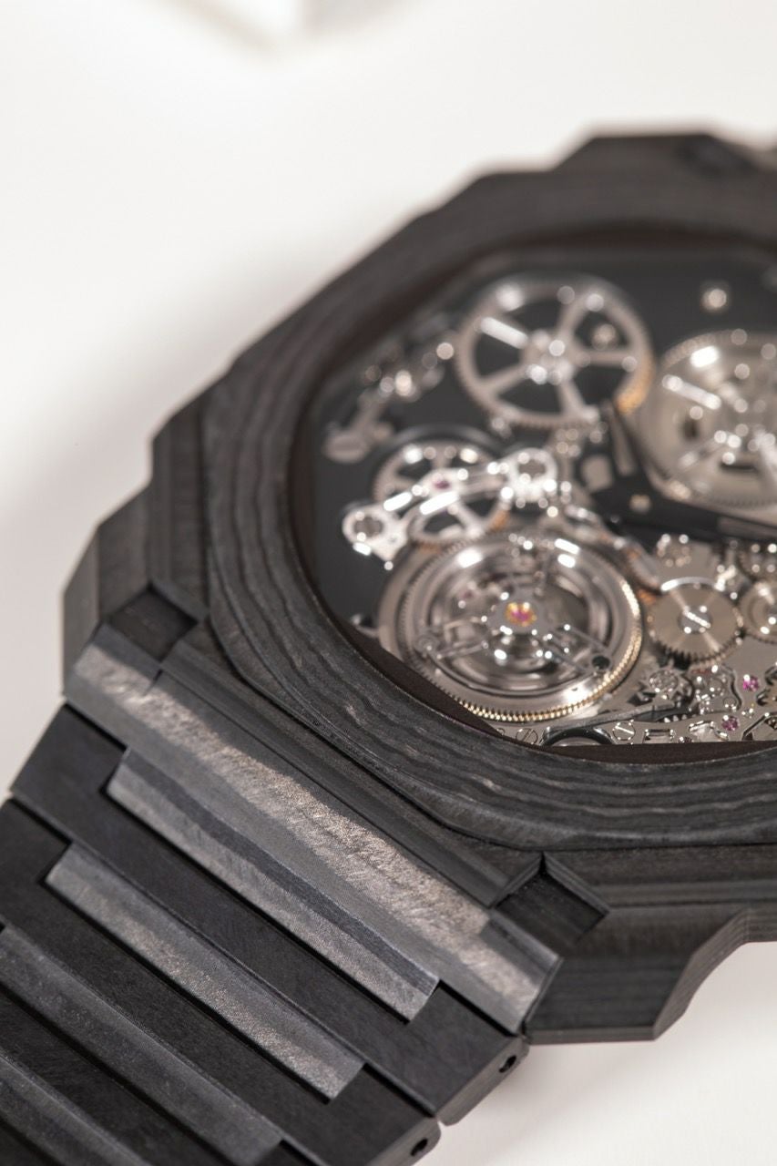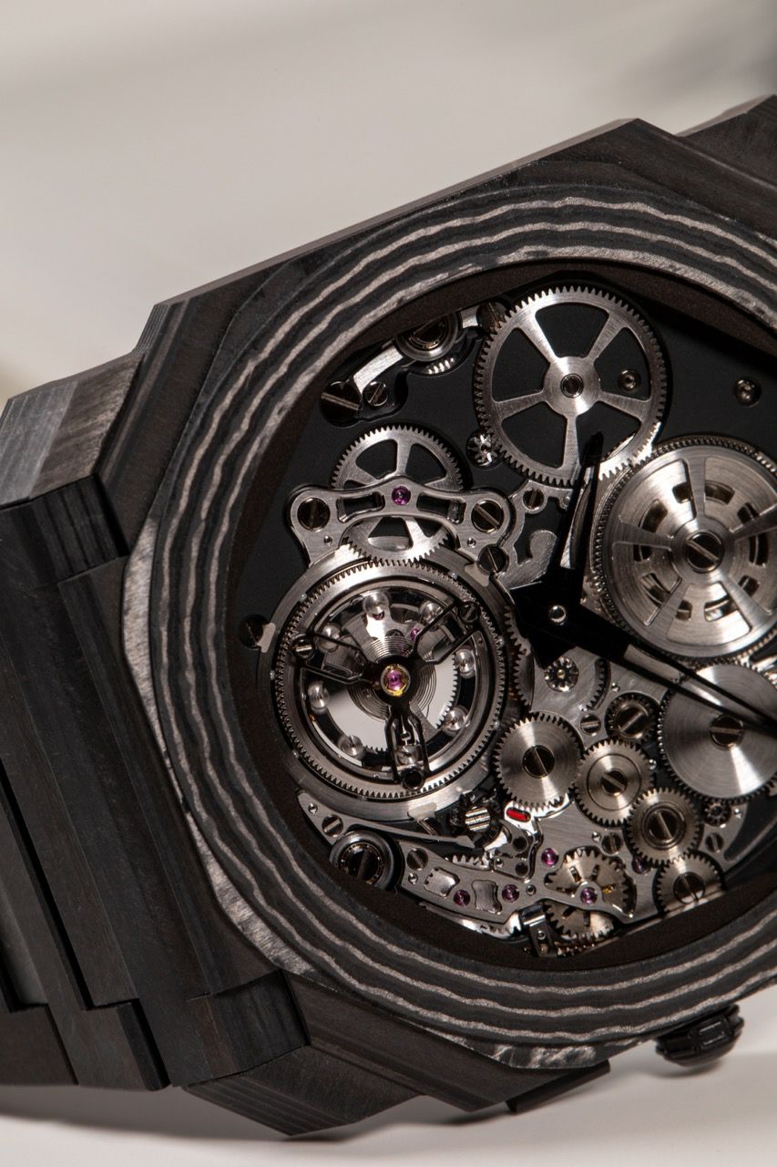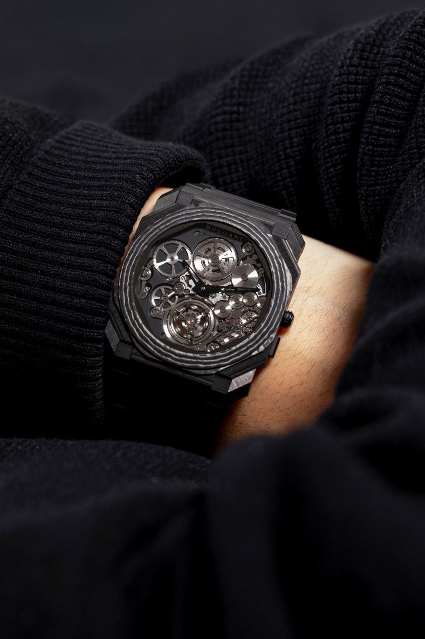 “超薄型”の世界で記録級のインパクトを持つフライングトゥールビヨンです。スケルトンの表情でメカの立体感を楽しめるうえ、薄さを成立させるために自動巻きCal.BVL 288(厚さ1.95mm)を採用し、時計全体でも約3.95mmという異次元のプロポーションを実現しています。 仕上げはブラック基調で、42mmケース/約52時間パワーリザーブ/30m防水と、特別感は強いのに“実用の手触り”も残したバランスが魅力です。 なお103072はカーボンケース&ブレス仕様として紹介され、軽さと質感のギャップで「着けた瞬間に驚く」タイプの一本です。