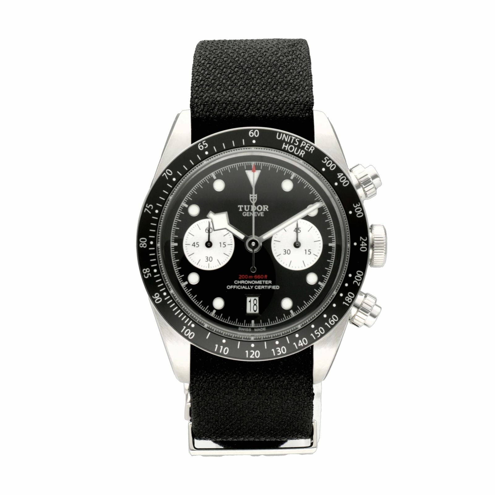 【新品】チューダー 時計 ブラックベイ クロノ 79360N ブラック文字盤 ファブリックベルト 自動巻き TUDOR