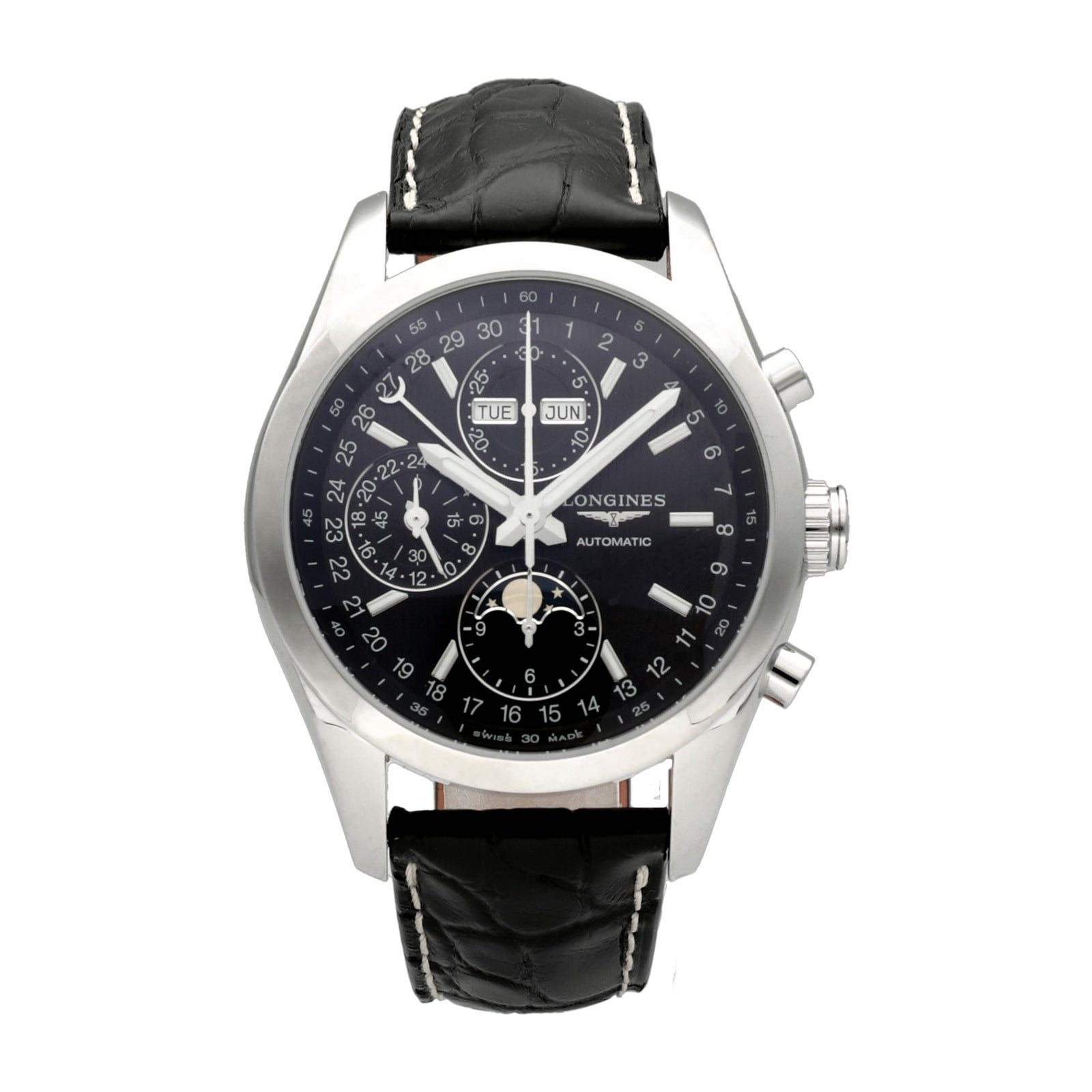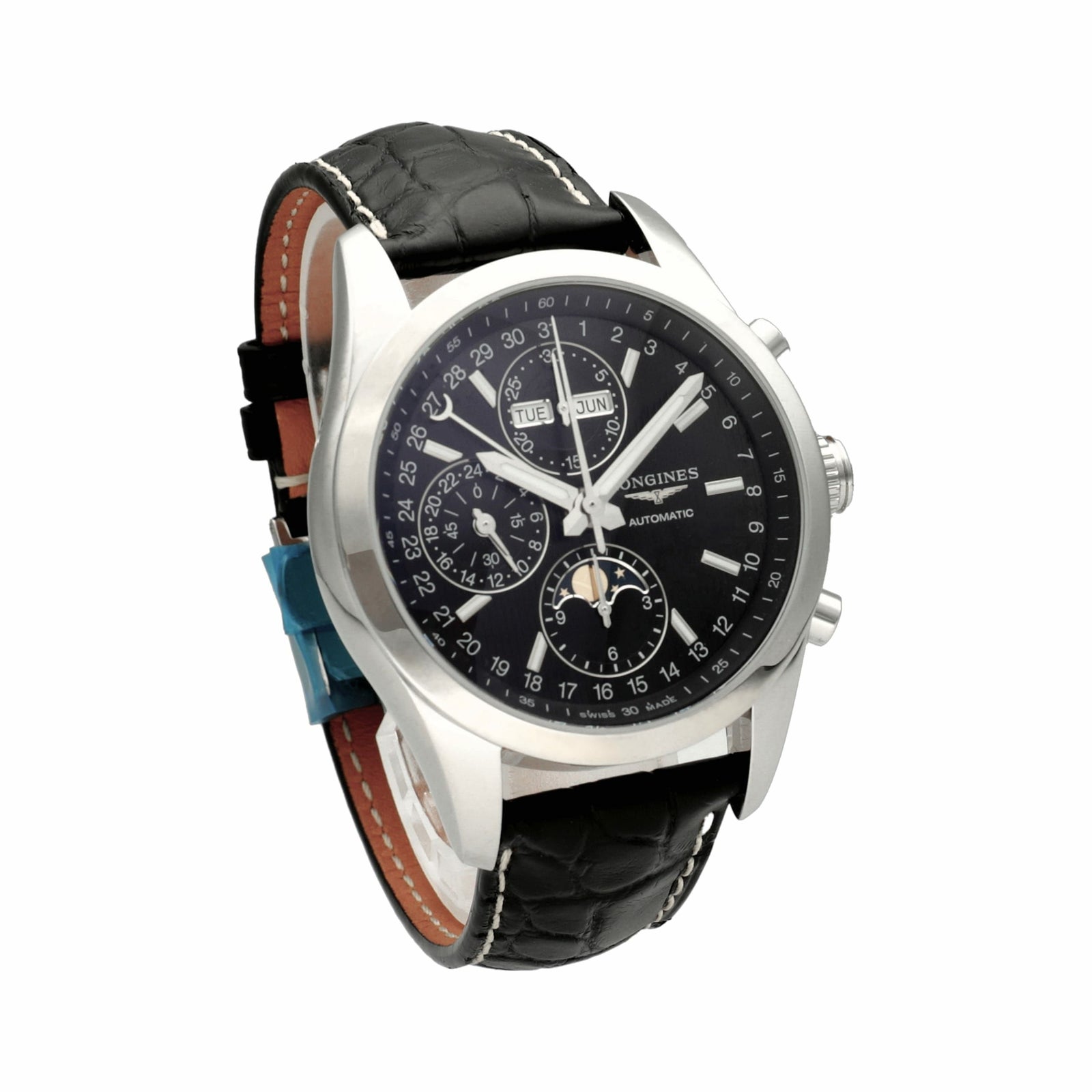 【未使用】ロンジン 時計 コンクエスト クラシック ムーンフェイズ L2.798.4.52.3 ブラック文字盤 自動巻き LONGINES