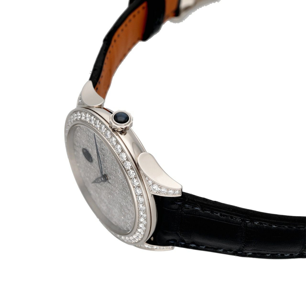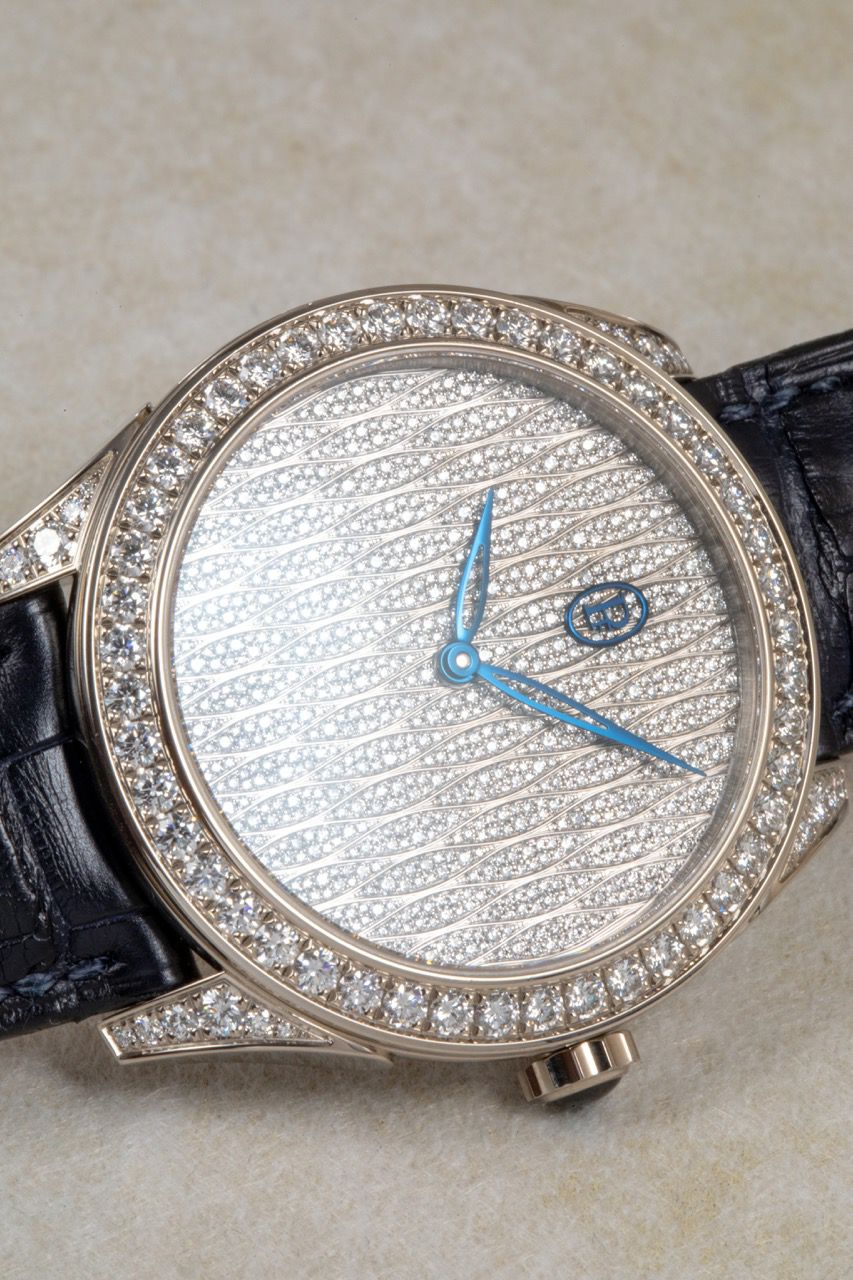 ジュエリーウォッチの華やかさと、時計としての“品の良さ”を両立した1本です。36mmのホワイトゴールドケースに、ダイヤを全面に敷き詰めた文字盤がとにかく美しく、光の当たり方で繊細に表情が変わります。文字盤は合計979石のブリリアントカットダイヤ、さらにベゼル&ラグにも合計70石のダイヤをセットしつつ、全体の印象は意外と上品で控えめにまとまるのが魅力です。