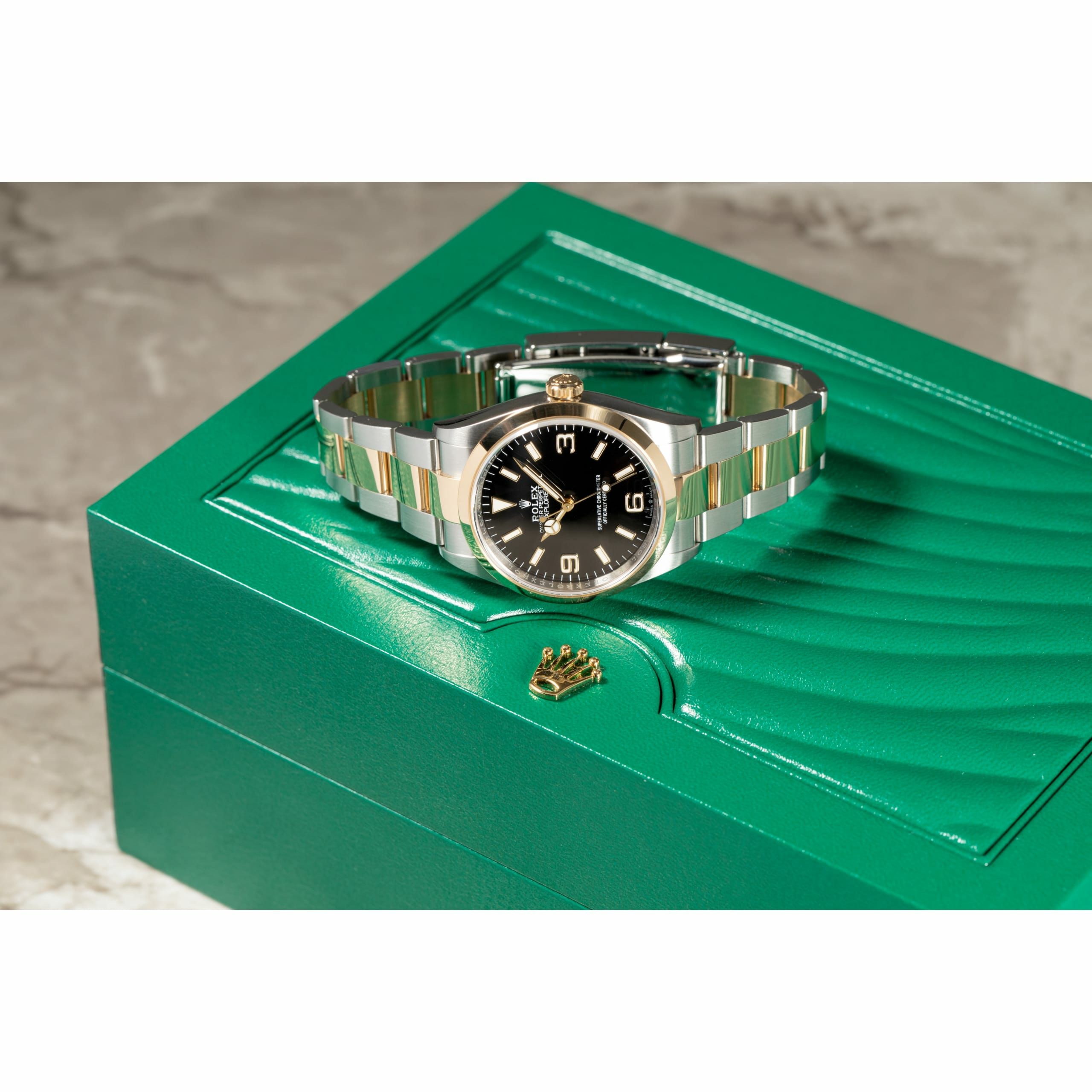 2021年に発表された36mmのエクスプローラー124273は、1953年からスタートしたエクスプローラーシリーズの中で初めてとなる、イエローロレゾールモデルとして、発表時に大きな驚きと注目を集めました。極めてスマートで、無駄のないデザインはそのままに、イエローロレゾールが華やかさをプラスしています。 エクスプローラーはその名の通り「探検家」を意味します。視認性の高い文字盤と堅牢なケース、防水性能に優れ過酷な状況下でも耐え得るよう設計されています。
