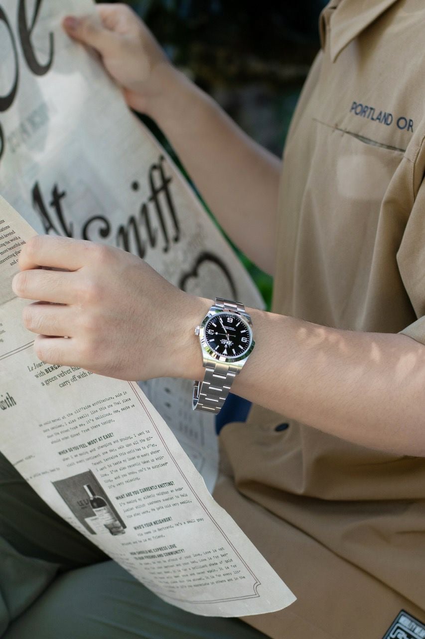 無駄を削ぎ落とした“究極のシンプル”を楽しめる、王道のスポーツロレックスです。36mmの程よいサイズ感で腕なじみが良く、スーツにもカジュアルにも自然に溶け込む万能さが魅力。視認性の高い3・6・9のインデックスと、どの角度から見ても品よくまとまるデザインで、毎日着けても飽きが来にくい一本です。派手さはないのに質感と存在感はしっかりあり、「1本だけ選ぶならこれ」という声が多いモデル。使うほどに良さが分かる、長く愛用できるロレックスです。