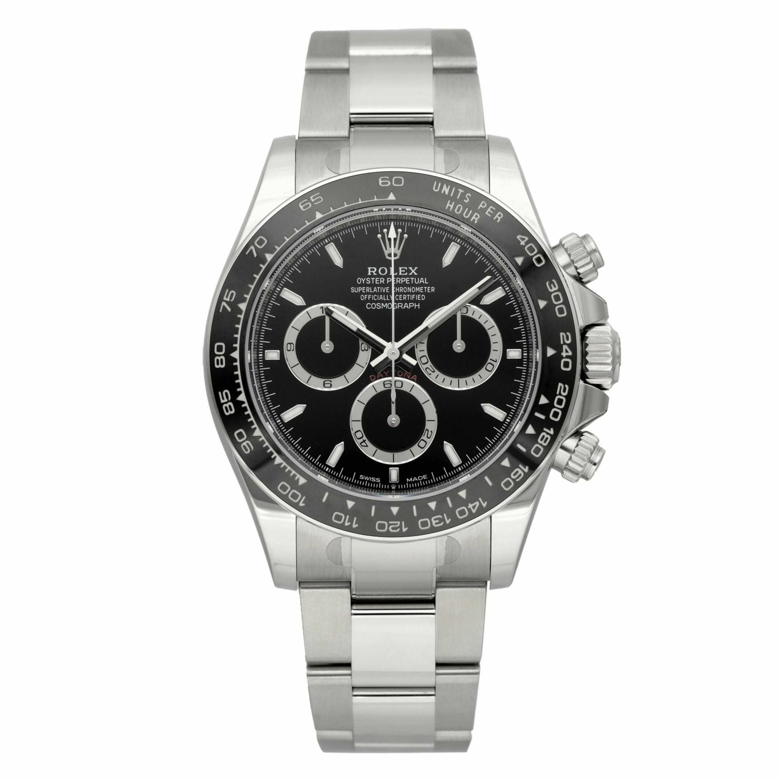 デイトナ誕生60周年となる2023年にシリーズを一新。伝統的なデザインコードはそのままに、ケース、文字盤、クラスプなどがアップデートされています。