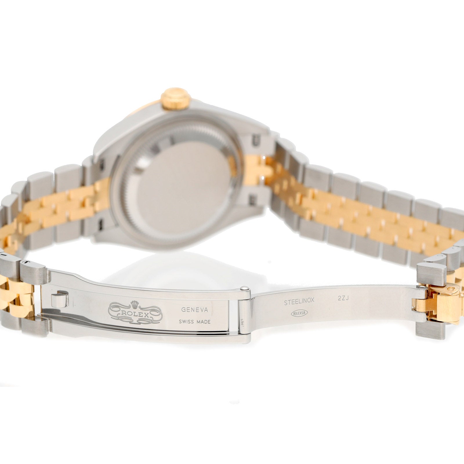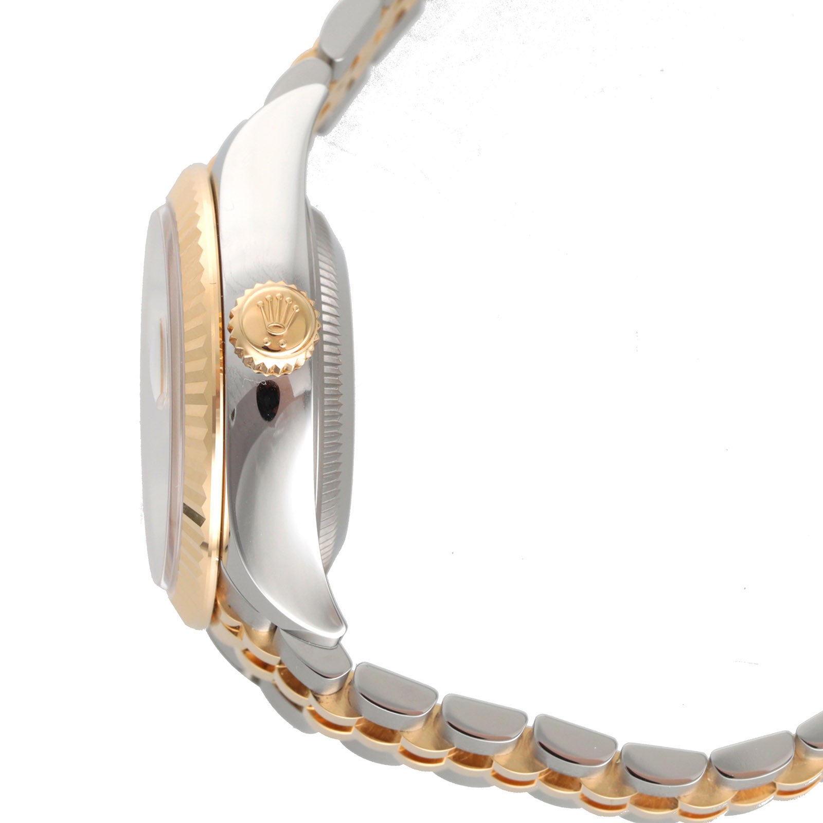 レディスモデルらしい優雅さの中に、ロレックスならではの確かな存在感をきちんと感じさせる一本です。28mmのケースにはオイスタースチールとイエローゴールドを組み合わせたイエローロレゾールが採用され、フルーテッドベゼルが手元に上品なきらめきを添えてくれます。華やかさはありながらも派手に傾きすぎず、きちんと感とやわらかさを自然に両立しているため、日常使いはもちろん、少し装いを整えたい場面にもなじみやすいモデルです。279173は文字盤違いによって雰囲気が変わるリファレンスですが、そのどれもがレディ デイトジャストらしい端正な美しさをしっかり備えています。