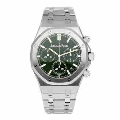 カーキグリーンの『グランドタペストリー』ダイヤルと、ケース&ブレスレットが一体となったデザインが特徴です。 流れるような曲線と、ヘアラインとポリッシュ仕上げのコントラストが際立ち、洗練された輝きを放っています。 41mmの自動巻クロノグラフは、最新のロイヤル オークデザインの進化を取り入れ、スタイルと機能性を両立しています。 完全自社製ムーブメントのCal.4401を搭載し、70時間のパワーリザーブを誇ります。 Audemars Piguetの技術と美が凝縮されています。