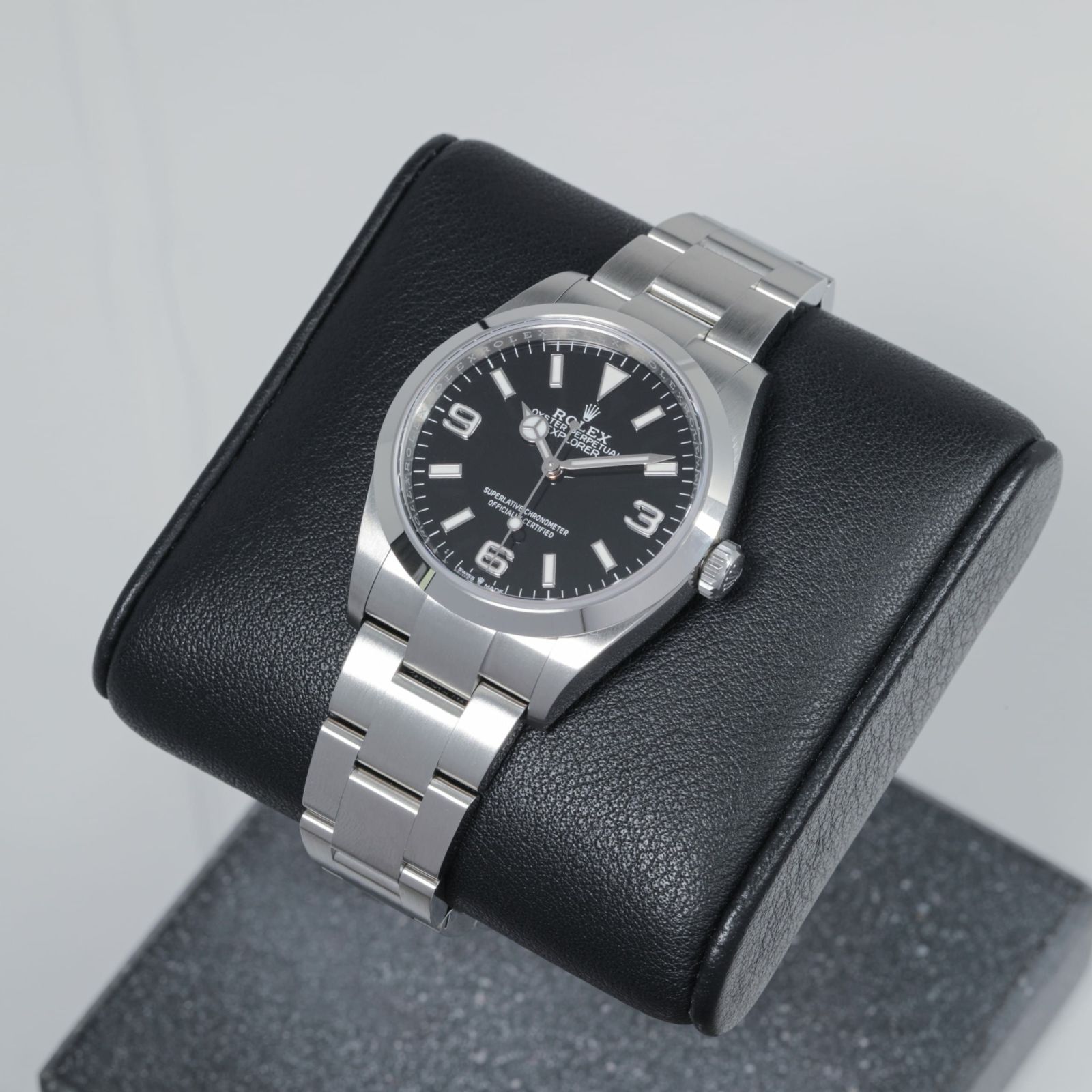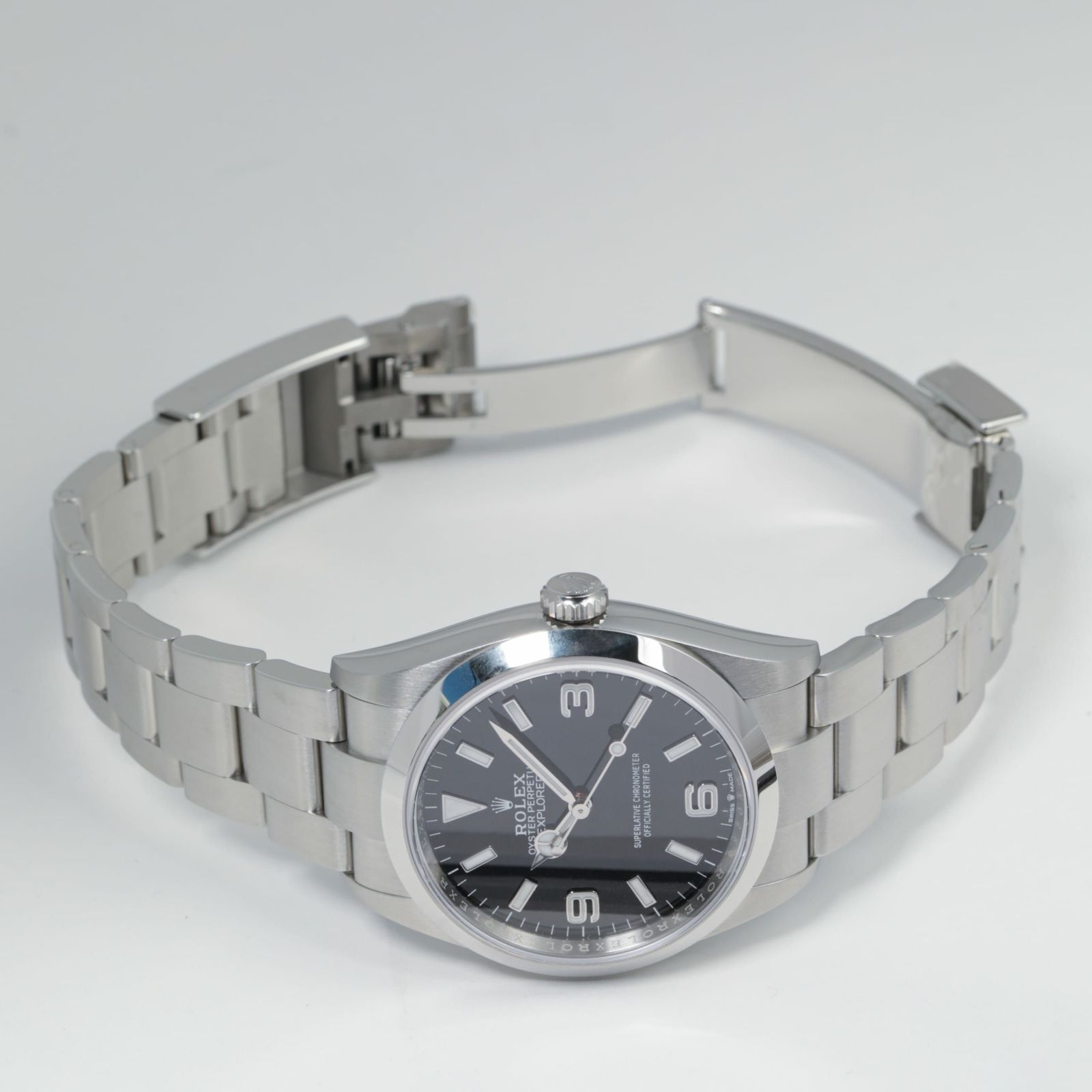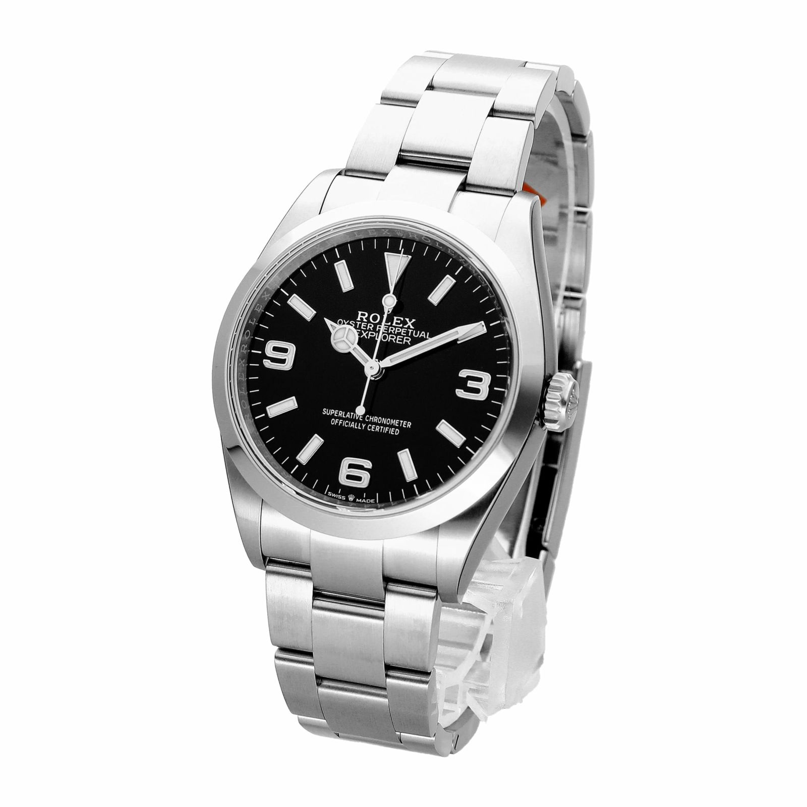 2021年に発表された36mmのエクスプローラー124270は、1953年からスタートしたエクスプローラーシリーズの伝統を引き継ぎ、デザインを大きく変えることなく進化してきました。極めてスマートであり、無駄のないデザインは洗練されており、あらゆるシーンで着用可能です。 エクスプローラーはその名の通り「探検家」を意味します。視認性の高い文字盤と堅牢なケース、防水性能にも優れ過酷な状況下でも耐えうるよう設計されています。 このデザインは年齢層を問わず多くの人々に愛されています。 ムーブメントは完全自社製キャリバー3230を搭載しており、約70時間のロングパワーリザーブ、優れた耐磁性、耐衝撃性を備えています。また、動作効率の高いクロナジーエスケープメントを採用しています。