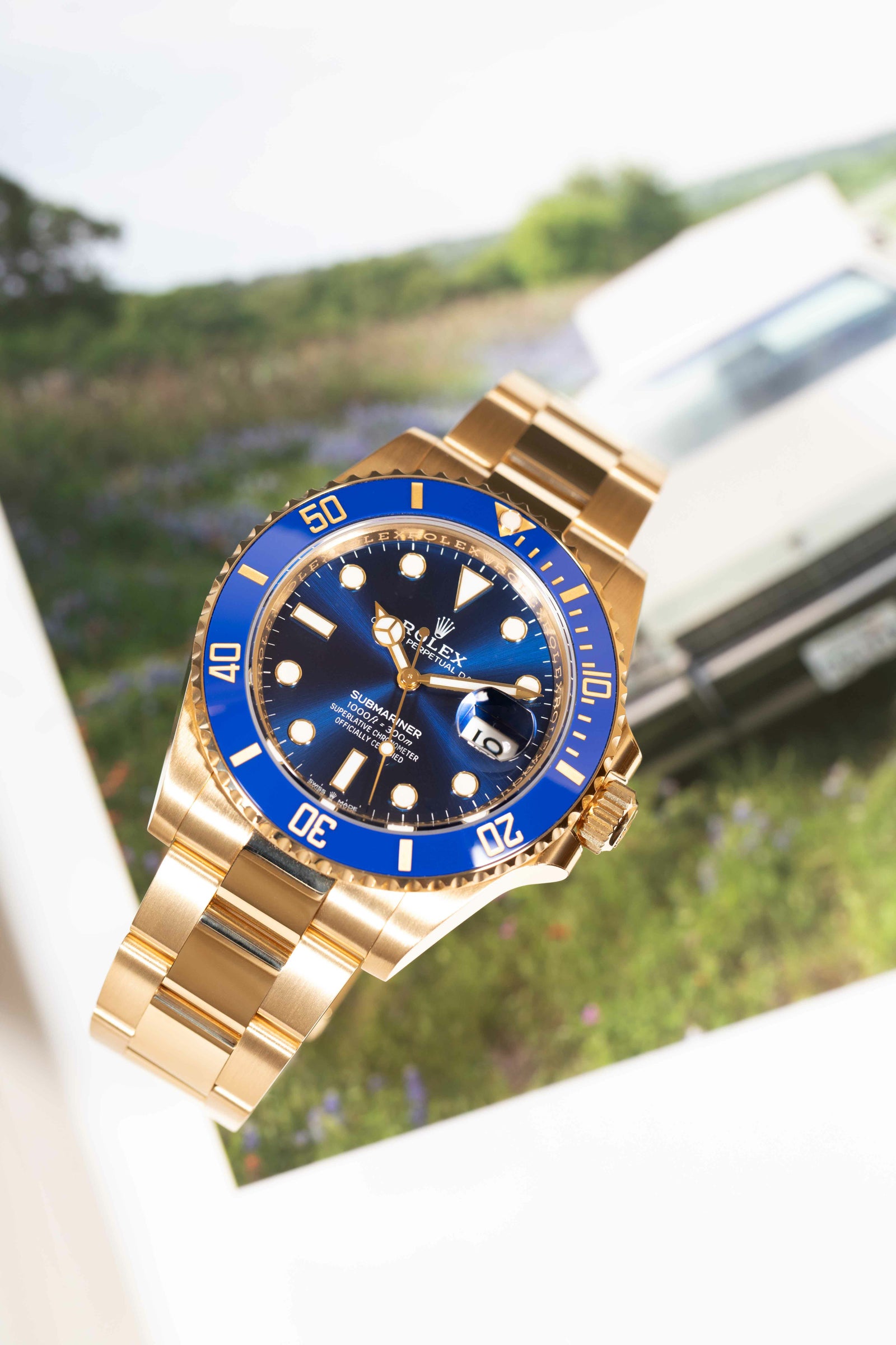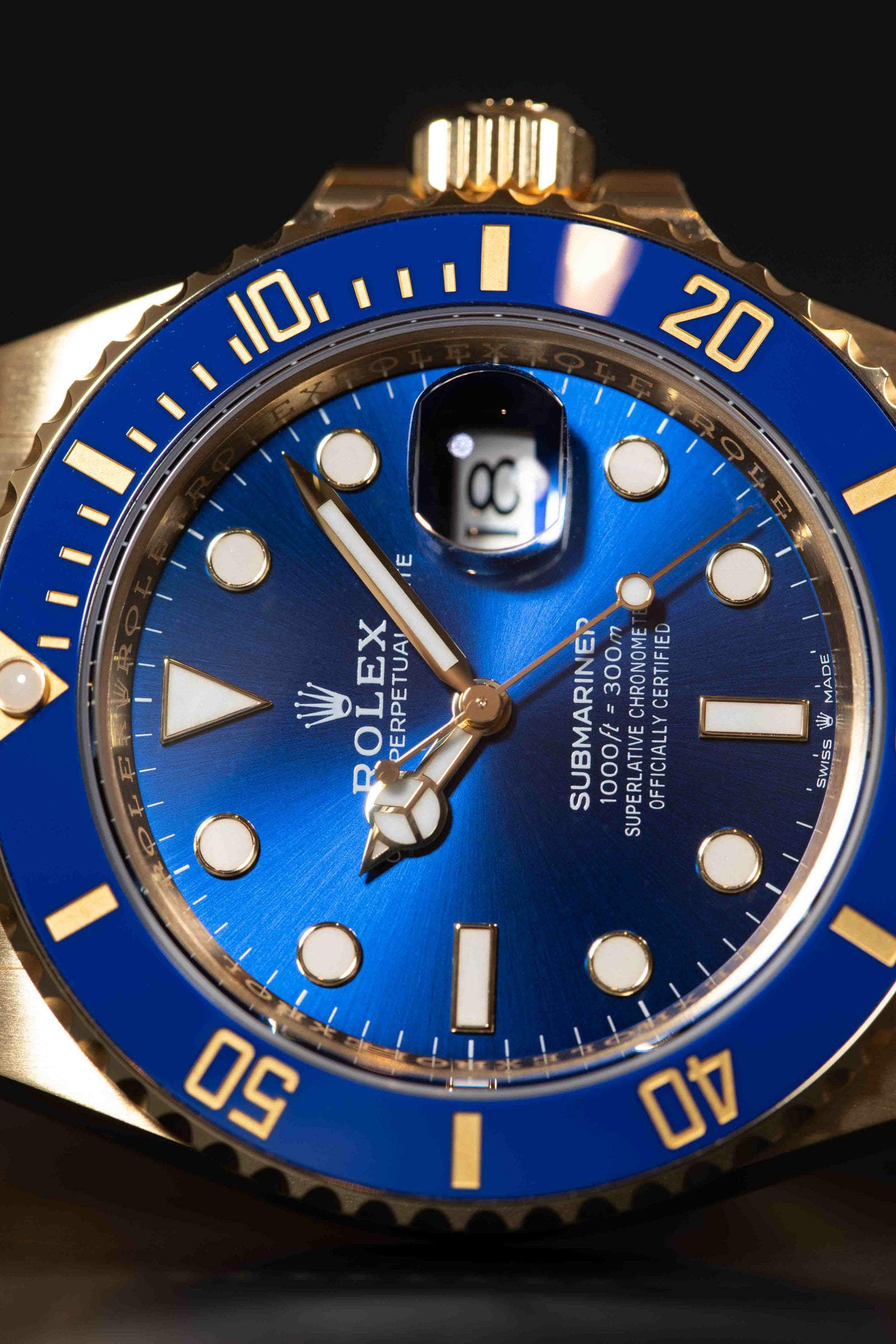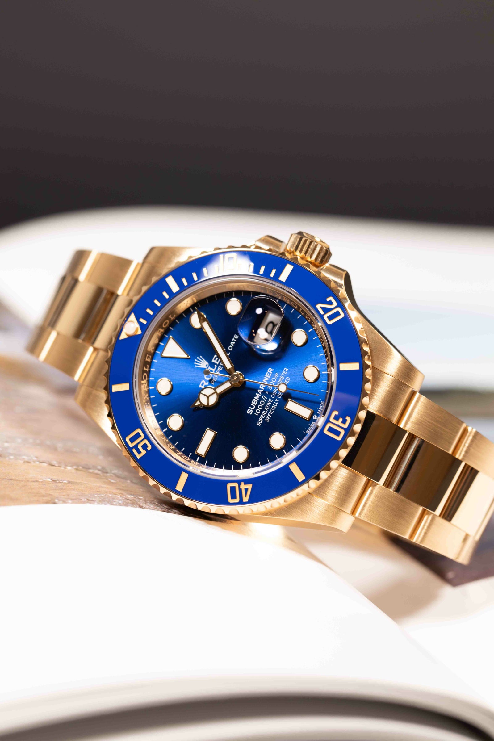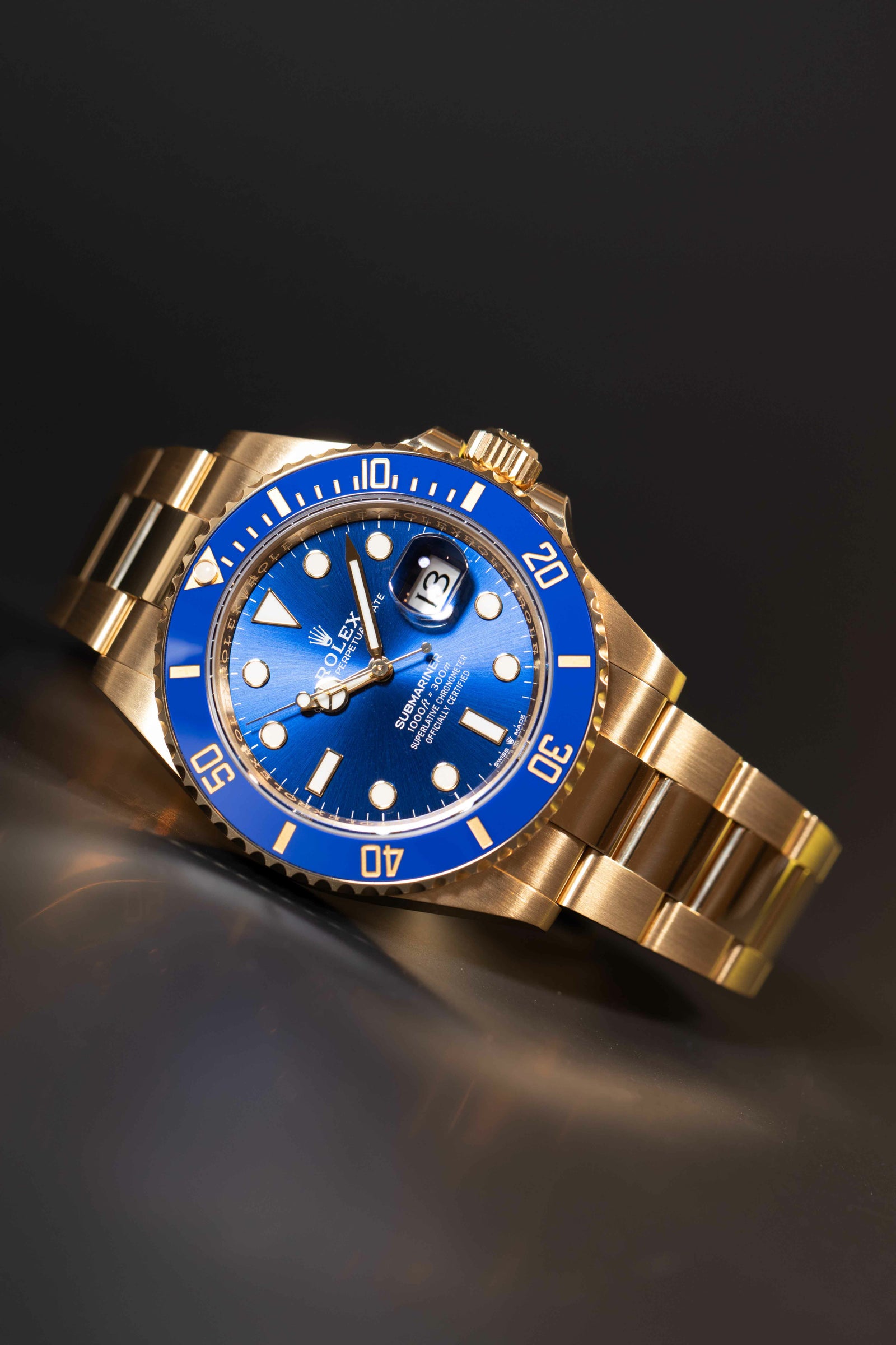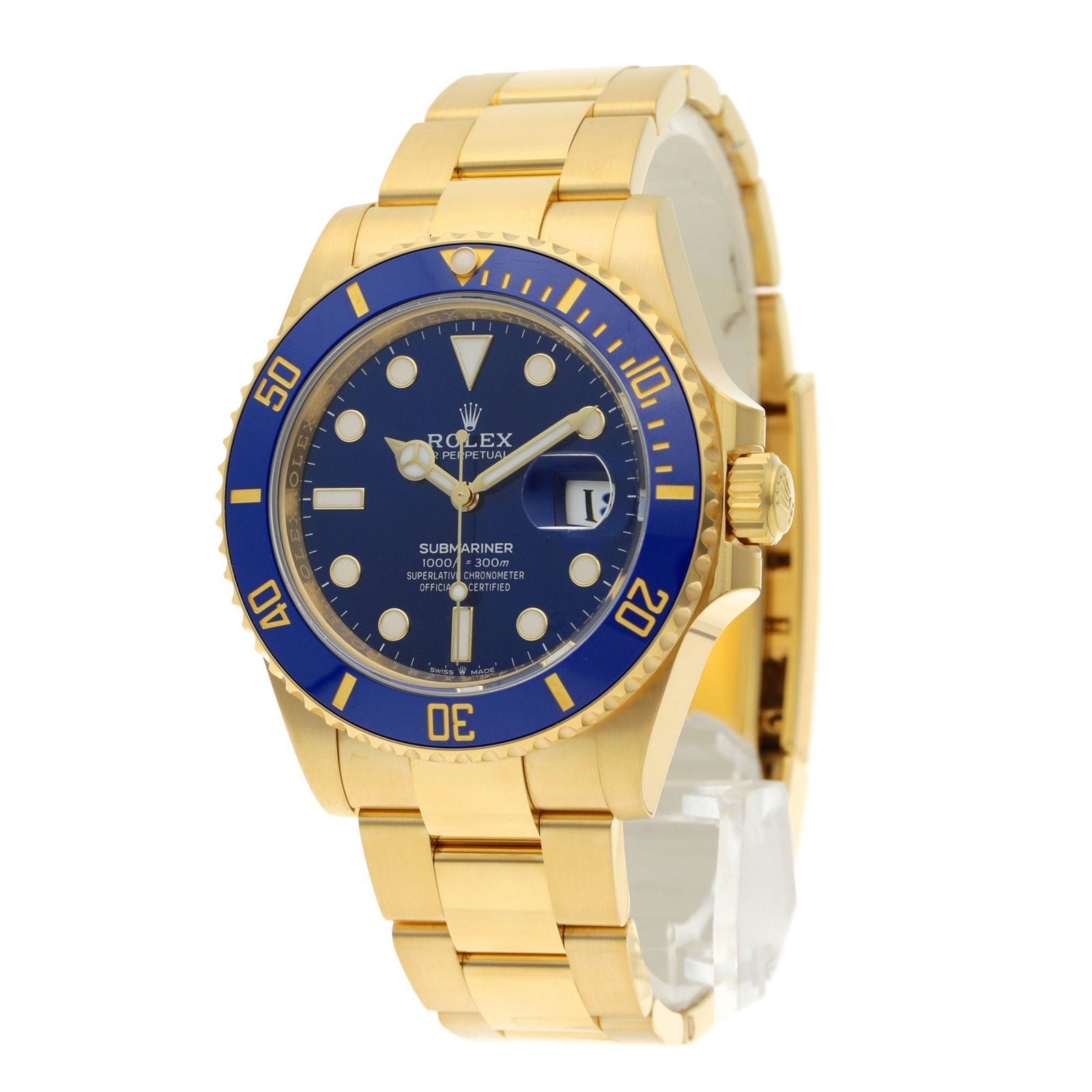 プロ仕様ダイバーズの力強さに、18Kイエローゴールドの華やかさを掛け合わせた、存在感抜群の一本です。41mmケースに、ブルーセラクロムベゼルとロイヤルブルーダイヤルの組み合わせが映えて、スポーティなのにしっかりラグジュアリー。ゴールドの迫力はありつつ、ブルーが入ることで重たく見えすぎず、腕元が上品に華やぎます。