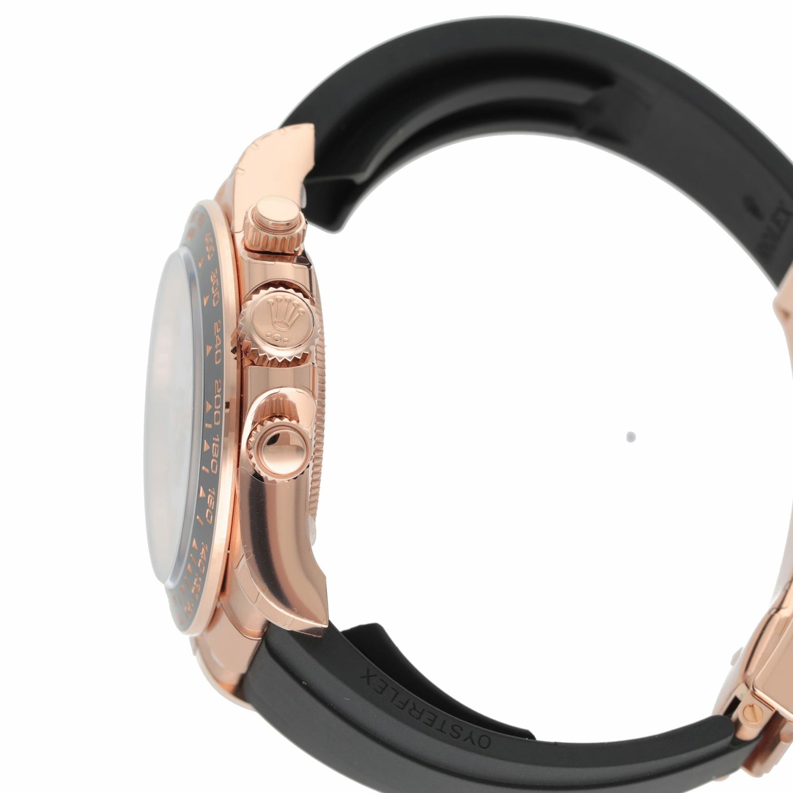 18Kエバーローズゴールドの華やかさに、ブラックのセラクロムベゼルとオイスターフレックスブレスのスポーティさを掛け合わせた、非常に完成度の高い一本です。ゴールドモデルでありながら重たく見えすぎず、黒が全体をしっかり引き締めてくれるので、ラグジュアリーなのに大人っぽくまとまるのが魅力。ケースは40mmで、デイトナらしい存在感と着けやすさのバランスも抜群です。