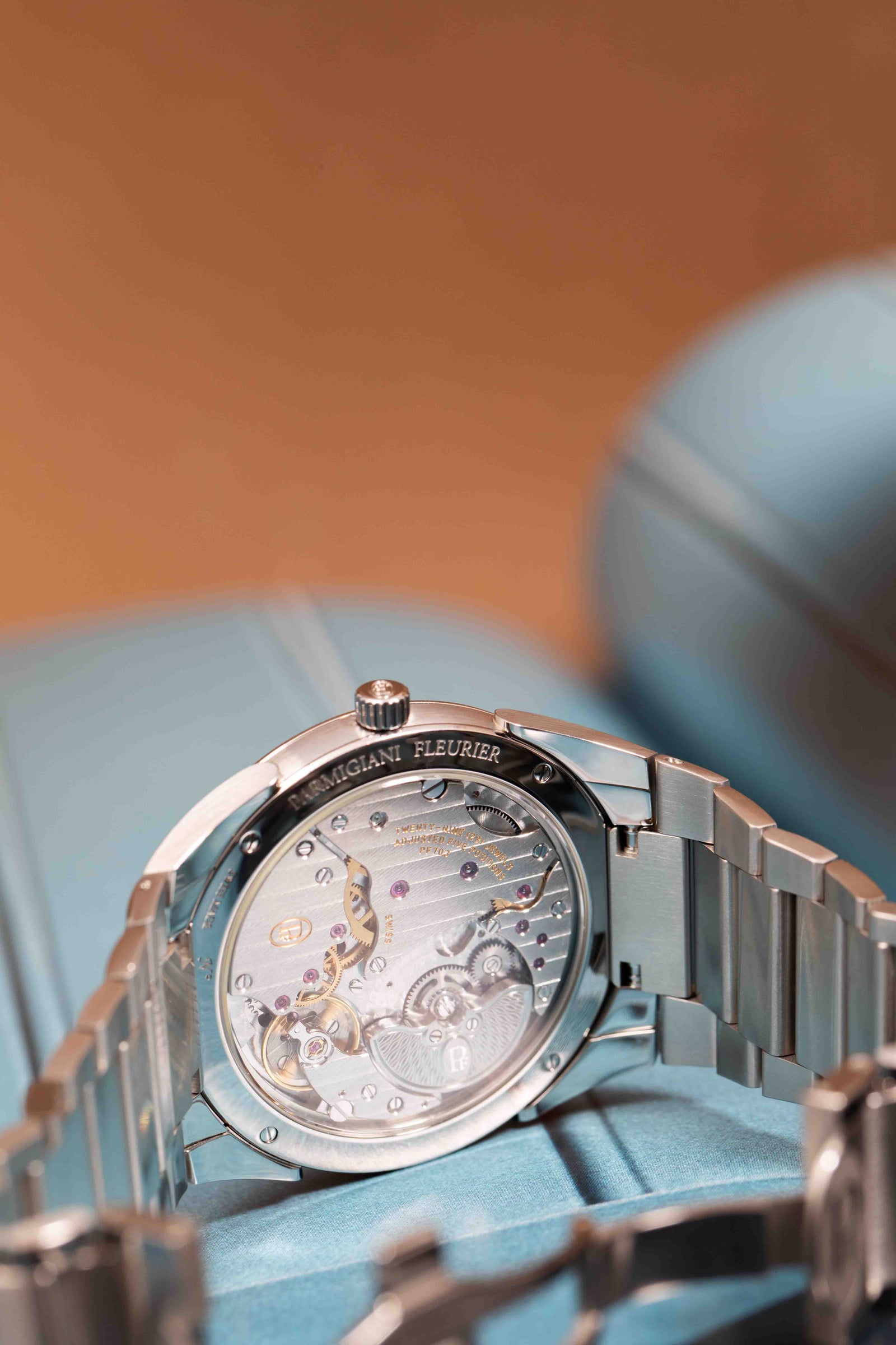 ムーブメントは自動巻きのCal.PF703で、マイクロローターならではの薄さを活かし、ケース厚は7.8mmと非常にスマート。約48時間パワーリザーブ、100m防水と、見た目の繊細さに反して普段使いもしやすい一本です。ノーデイト仕様なので文字盤全体のバランスも美しく、静かなのにしっかり贅沢さが伝わります