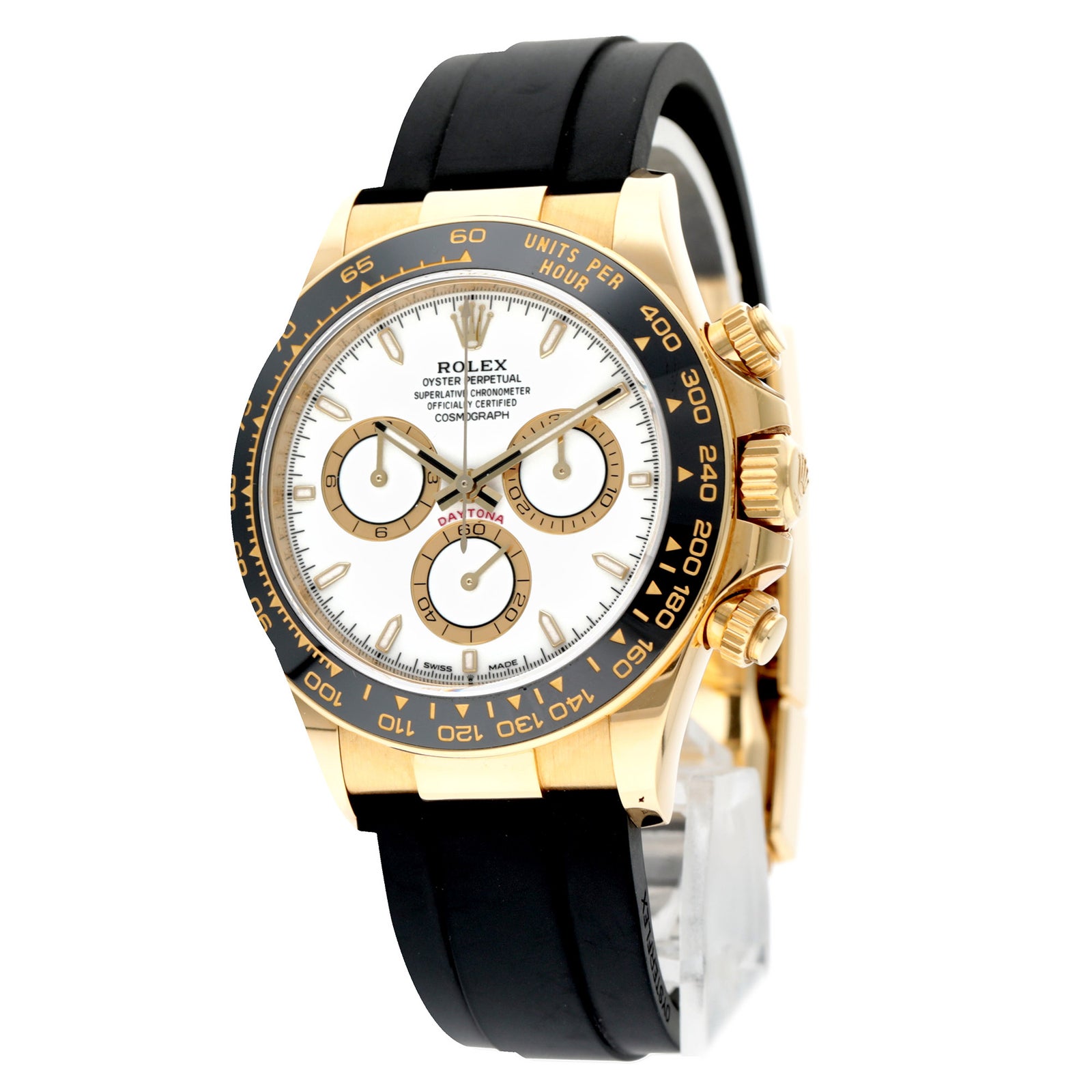 ムーブメントには自動巻きクロノグラフのCal.4131を搭載し、約72時間のパワーリザーブと100m防水を備えているため、見た目の存在感だけでなく、日常で使う高級時計としての安心感もしっかり感じられます。ブラックベゼルのシャープさと、イエローゴールドの豊かな表情が同居していることで、華やかさはありながらも過度に派手へ傾きすぎず、装いの中に自然と高級感を添えてくれる一本に仕上がっています。デイトナらしい王道感を楽しみながら、より今の時代に合った軽快さも求めたい方におすすめしやすいモデルです。
