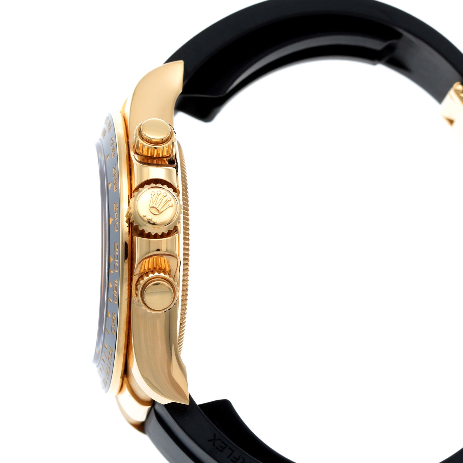 デイトナの持つスポーティーな緊張感に、18 ctイエローゴールドならではの華やかさを重ねたモデルです。40mmのオイスターケースに、ブラックのセラクロムベゼル、そしてオイスターフレックス ブレスレットを組み合わせた構成により、ゴールドモデルでありながら重たく見えすぎず、現代的で引き締まった印象にまとまっています。126518LNは文字盤バリエーションのある型番ですが、どの仕様でもラグジュアリーとスポーツのバランスが非常に上手く整えられているのが、このモデルの大きな魅力です。