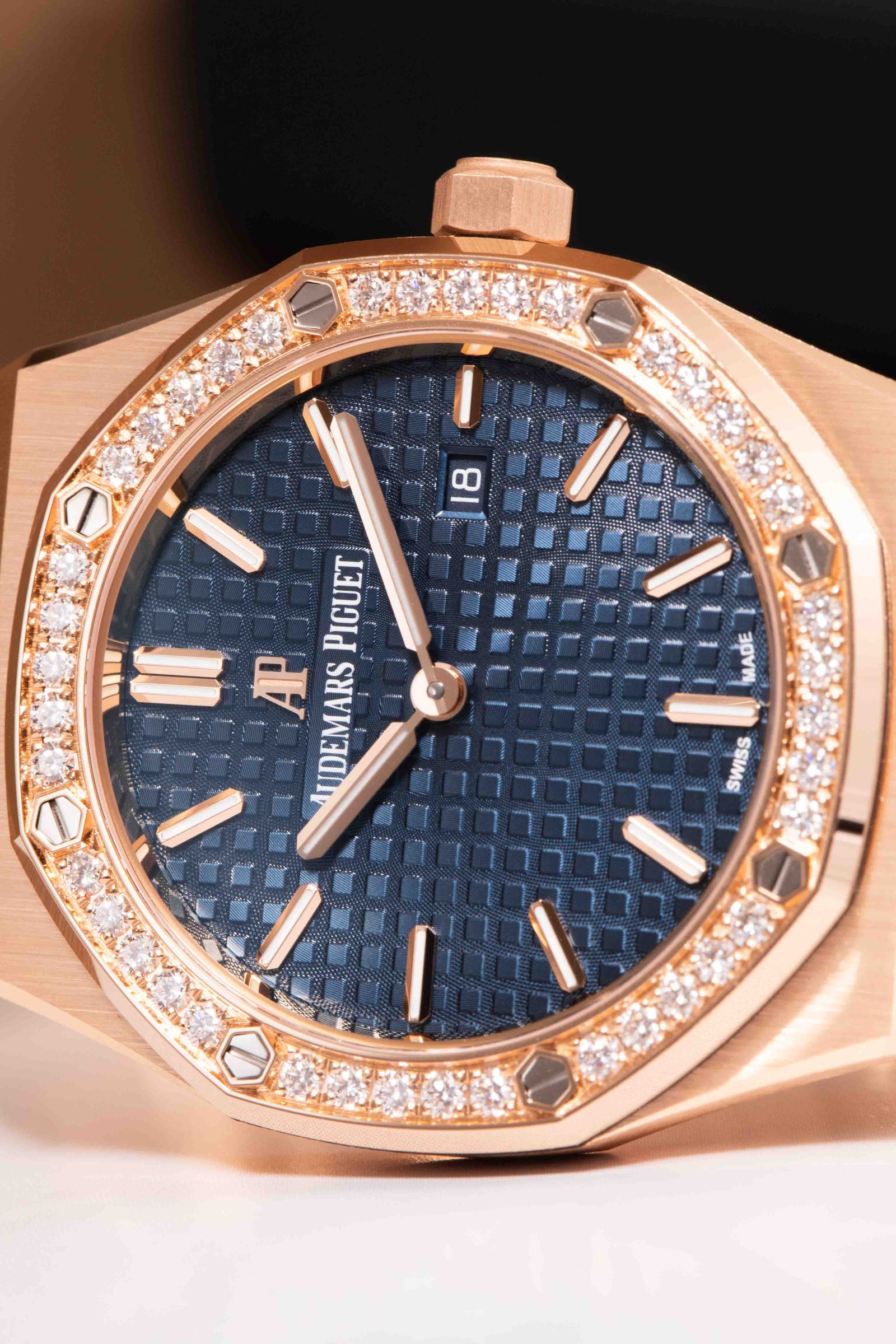 「ロイヤルオーク ブルーダイヤル×ピンクゴールド ~ダイヤモンドベゼルが際立つ洗練の一本~」