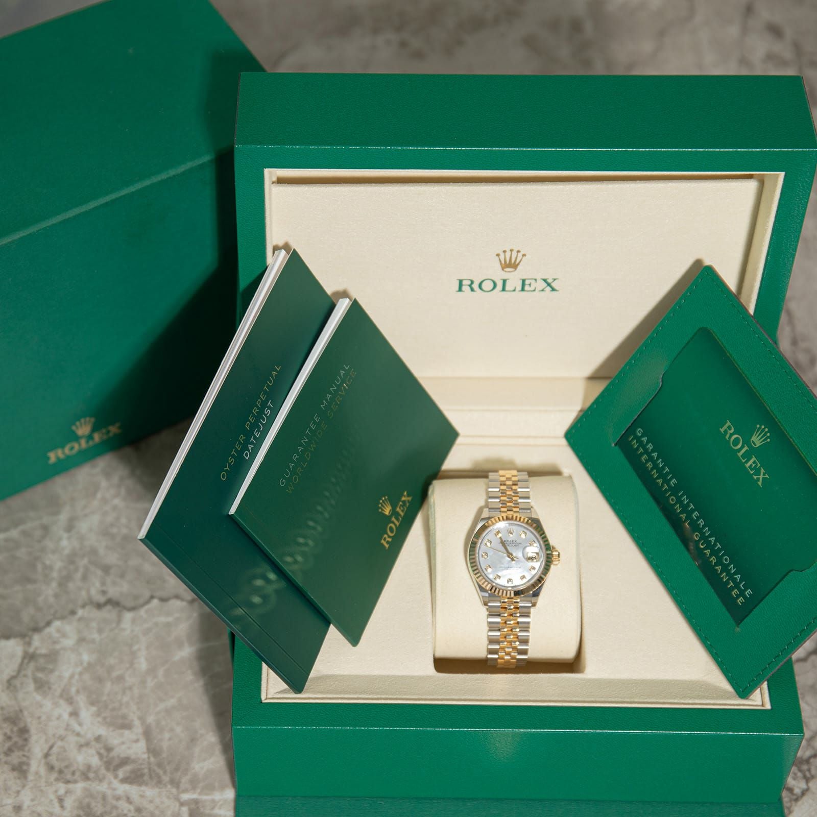 【新品】 ロレックス 時計 レディ デイトジャスト 28 インデックスダイヤ 279173NG シェル文字盤 自動巻き ROLEX 10P ダイヤ