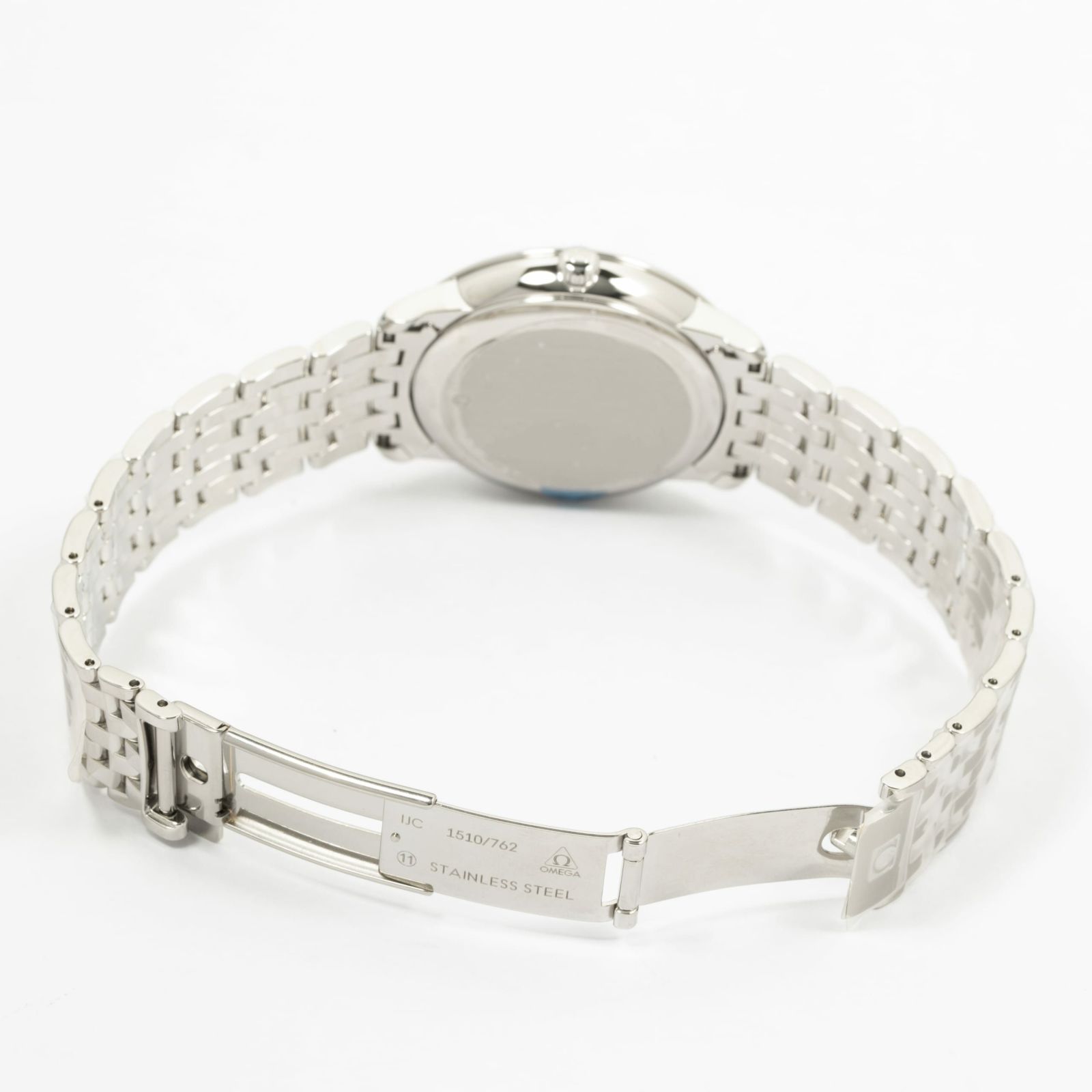 オメガ デ・ヴィル プレステージはオメガを代表するドレスウォッチです。丸みのあるやや小ぶりな37mmのケース径に約10mmの薄いデザインで、シンプルで洗練されたクラシカルな雰囲気を持っています。 文字盤は落ち着いた光沢のあるブラックとなっており、シルバーのローマ数字のインデックスを引き立て高級感を醸し出します。柔らかな着け心地の7連ブレスが腕元に沿いスマートな着け心地となります。 「デ・ヴィル」とはフランス語で「街」や「都会」を意味します。その名に相応しい洗練されたデザインで個性を引き立ててくれる腕時計です。
