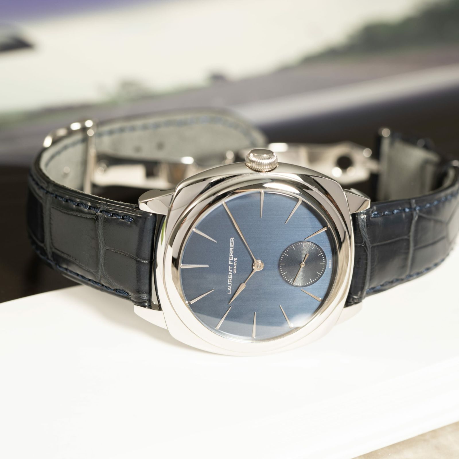 【中古A】ローラン フェリエ 時計 スクエア マイクロローター ブルー LCF013.AC.CG2 ブルー文字盤 自動巻き LAURENT FERRIER
