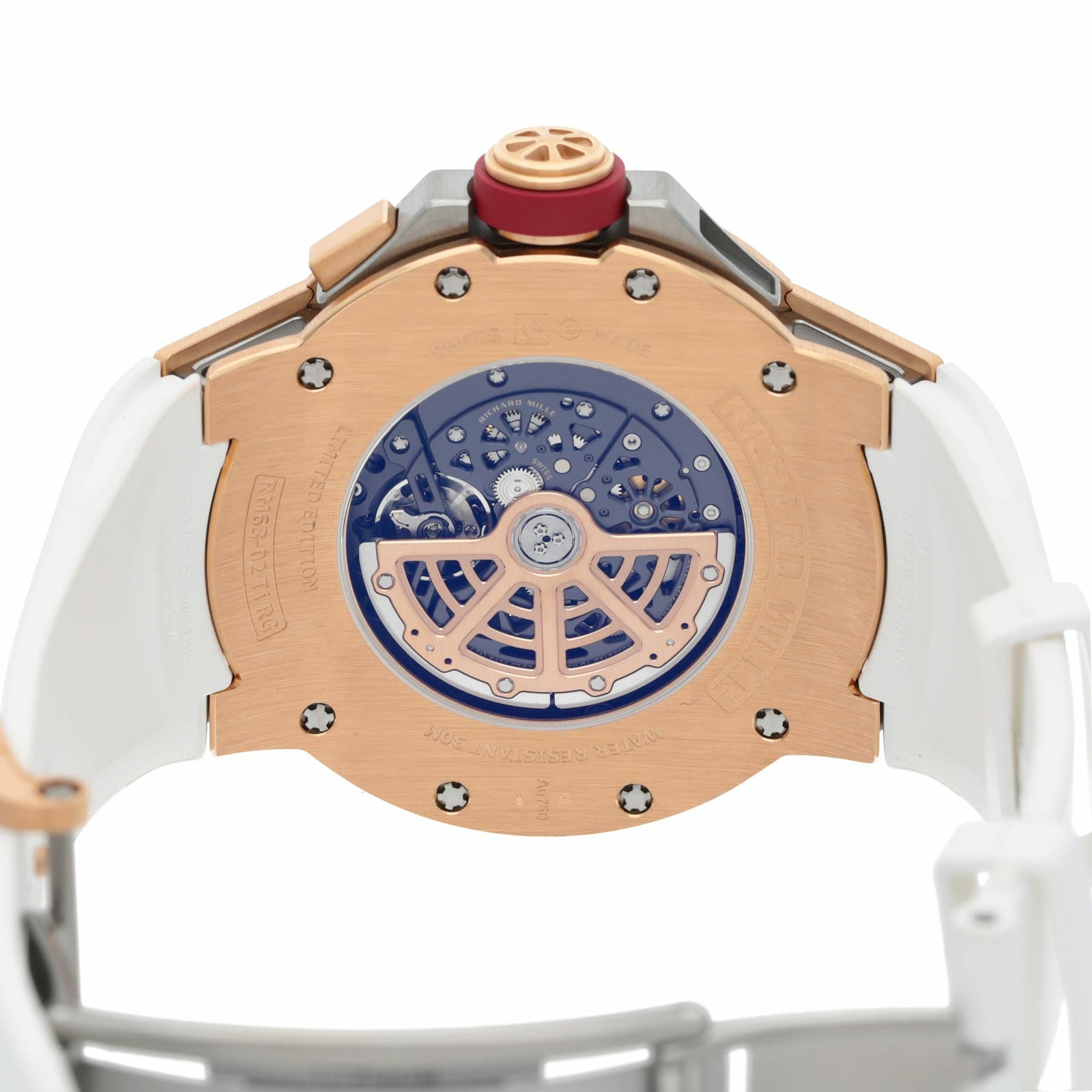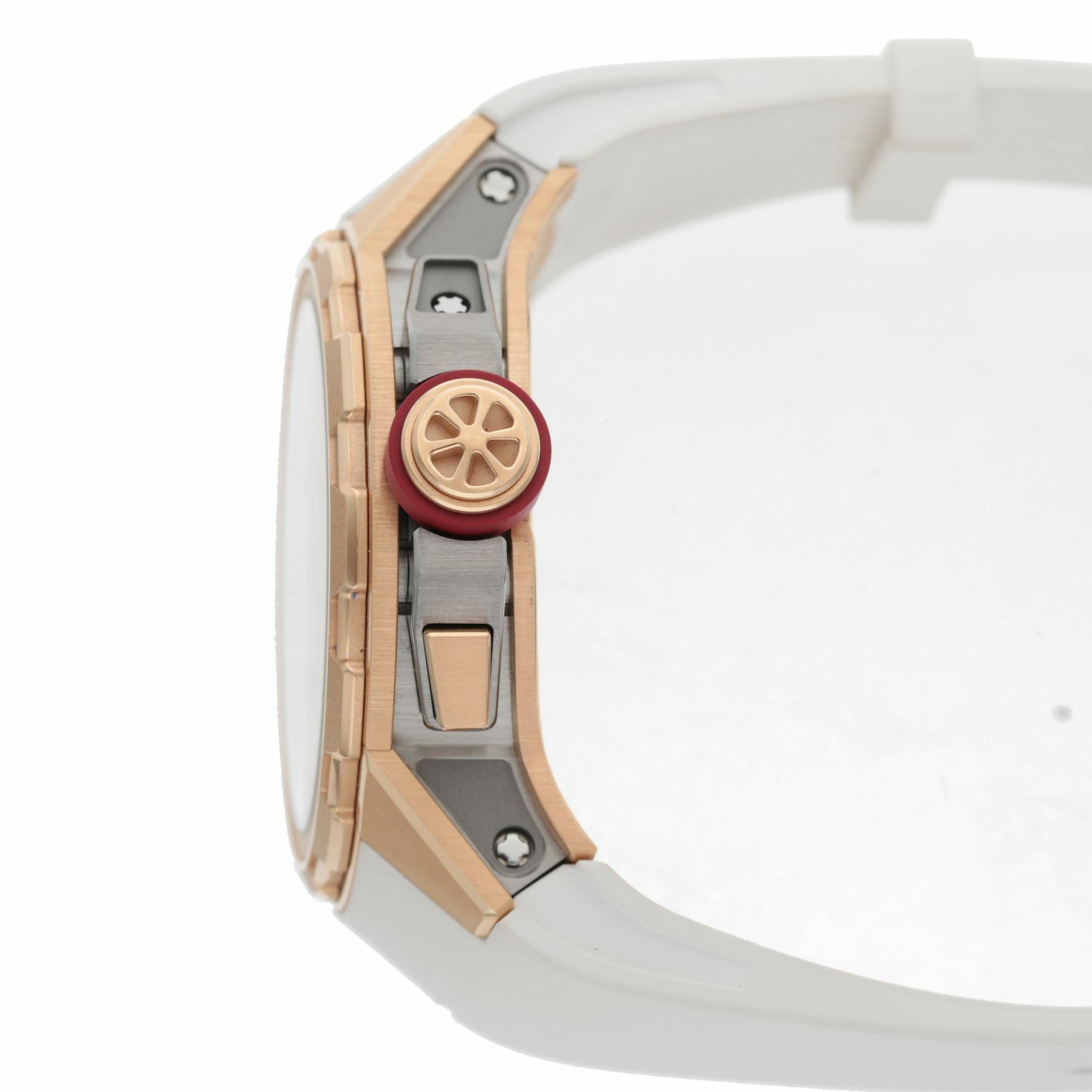 ケースは約47mmの存在感あるサイズで、RMらしい立体的なフォルムがしっかり楽しめる一本です。モデル展開によって素材違いはありますが、代表的な仕様ではレッドゴールド×チタンの組み合わせが使われ、迫力がありながら装着感にも配慮されています。パワーリザーブは約50時間で、見た目だけでなく日常使いも意識された仕上がりです。